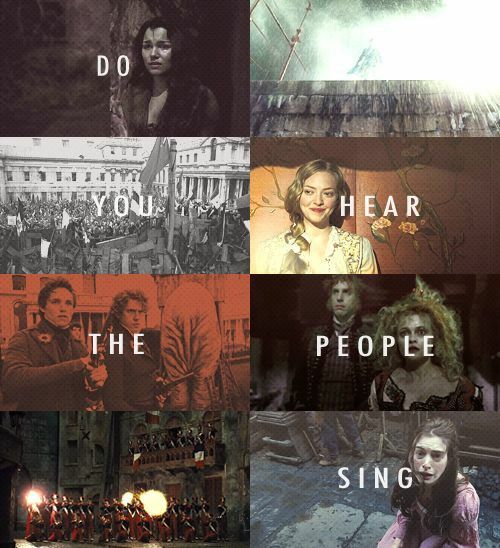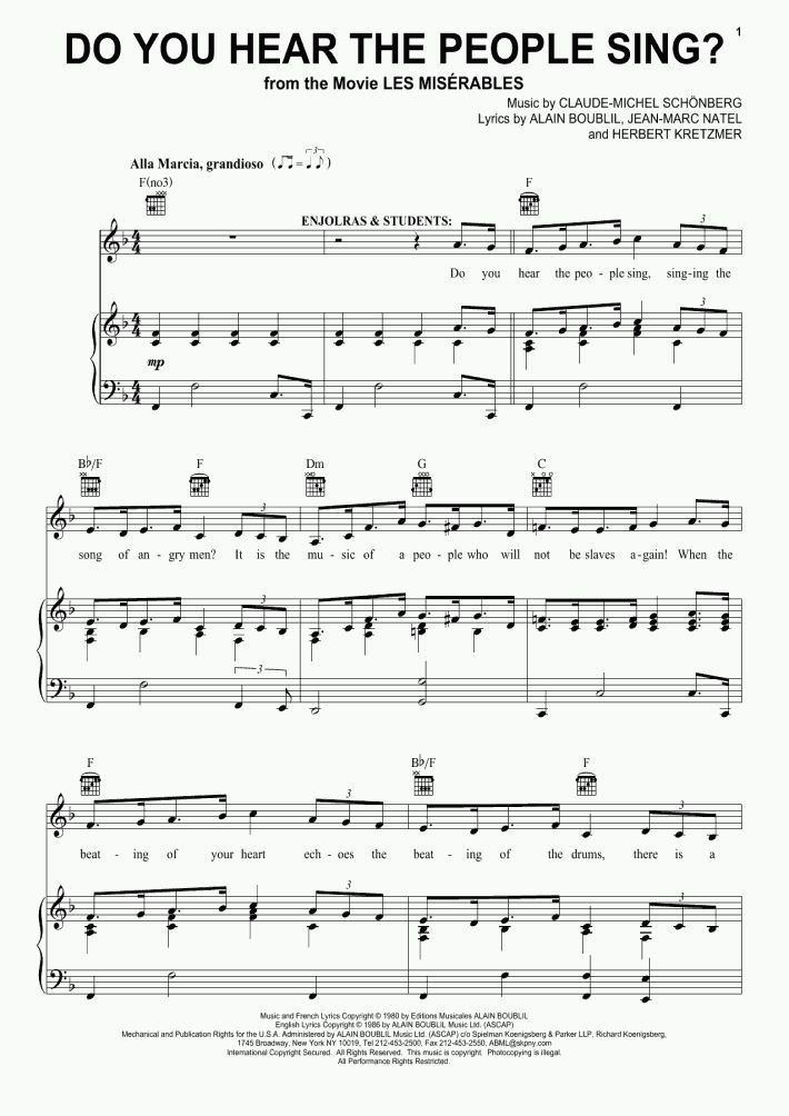 - เพลง Do You Hear The People Sing? ประพันธ์เนื้อร้องโดย Alain Boublil ,Jean-Marc (ภาษาฝรั่งเศส) และ Herbert Kretzmer (ภาษาอังกฤษ) และประพันธ์ดนตรีโดย Natel Claude-Michel Schönberg  ถูกขับร้องครั้งแรกใน Les Misérables : Act I โดยตัวละคร Enjolras (อองฌองราส) ผู้นำกลุ่มนักศึกษาที่มีชื่อว่า the Friends of the ABC ในฉากที่พวกเขากำลังเตรียมการเพื่อก่อกบฏบนถนนในกรุงปารีส ระหว่างขบวนแห่ศพของนายพล Jean Maximilien Lamarque (ฌ็อง มักซีมีเลียง ลามาร์ก) เพลงนี้ถูกขับร้องอีกครั้งในตอนจบ ซึ่งเป็นเพลงปิดท้ายของละครเพลง ขับร้องโดยตัวละคร Jean Valjean (ฌองค์ วัลฌอง) ตัวละครเอกของเรื่อง