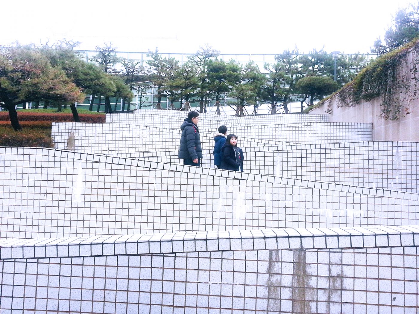 ด้านนอกก็จะเป็นสวนที่มีงานประติมากรรมตั้ง มีลานกิจกรรม เราไปช่วงฤดูหนาว พื้นเลยเป็นสีเหลือง น้ำตาลแบบนี้ สวยแปลกตาเป็นอีกแบบ