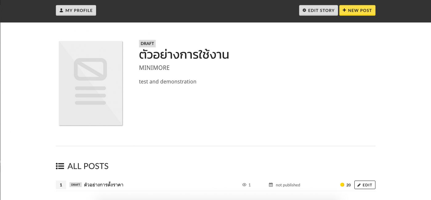 ขั้นตอนที่ 1 กดเข้าไปยังหน้า My Profile เลือก Story ที่เราต้องการ หรือสร้างใหม่เลยก็ไ้ด้!