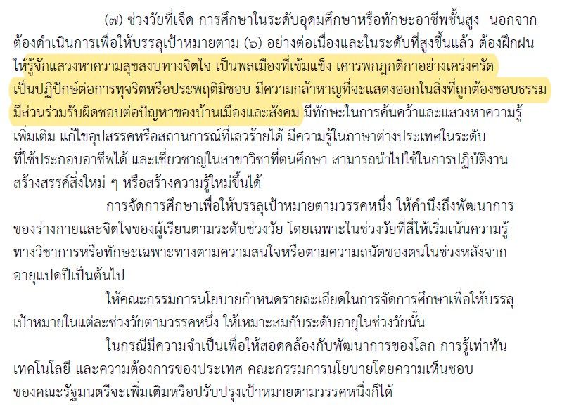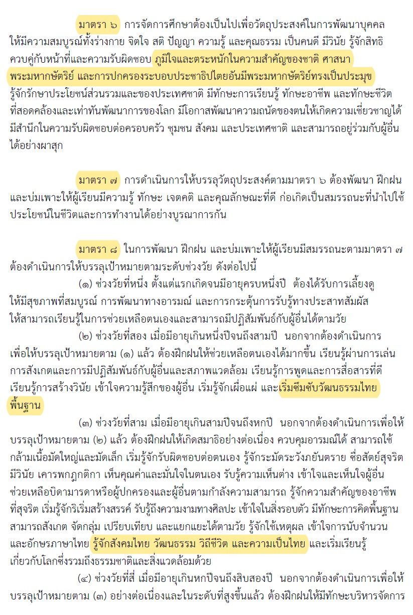 มาตรา 8 แบ่งตามช่วงวัย ว่าควรจะพัฒนาอะไรบ้าง ดีเทลเดี๋ยวอ่านในรูปเอาแล้วกันนะมันยาว จากเดิมแค่ทำให้มีการศึกษาต่อไปเรื่อยๆ อันที่น่าสนใจๆ