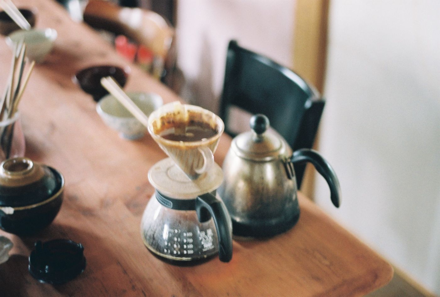 โชคดีที่อายังเป็นคอกาแฟเหมือนฉัน ระหว่างที่ฉันและทรายช่วยกันล้างจาน อายังก็เอาที่บดกาแฟแบบมือหมุนออกมาบดเมล็ดกาแฟ ตั้งน้ำร้อนบนเตา และเตรียม dripper กับกระดาษฟิลเตอร์พร้อมสำหรับดำกาแฟดริป