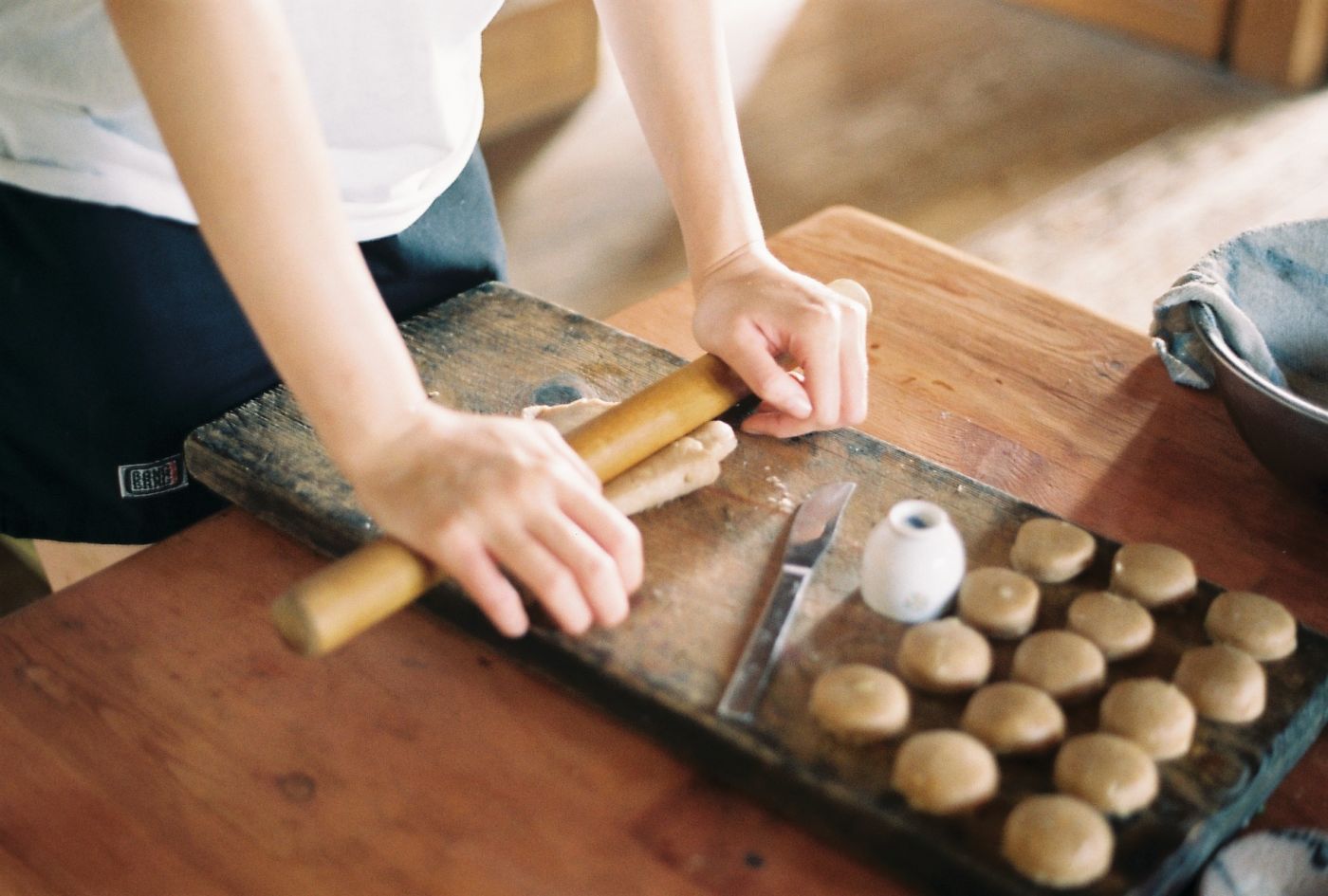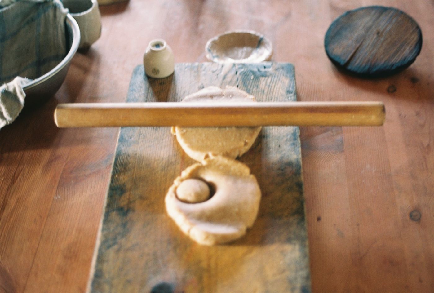 ฉันรีบล้างหน้าแปรงฟัน และอาสาช่วยไทโจนวดแป้ง เธออธิบายว่า ตอนนี้กำลังเตรียมแป้งสำหรับทำสโคนอยู่ และพาไปดูแป้งที่นวดเสร็จแล้วหนึ่งก้อน ที่นอนอยู่ในชามแสตนเลสและคลุมด้วยผ้าขนหนูชุบน้ำ เพื่อรอเวลาให้เจ้าก้อนนี้พองขึ้นเรื่อยๆ โดยตั้งทิ้งไว้ประมาณ 2 ชั่วโมงครึ่ง