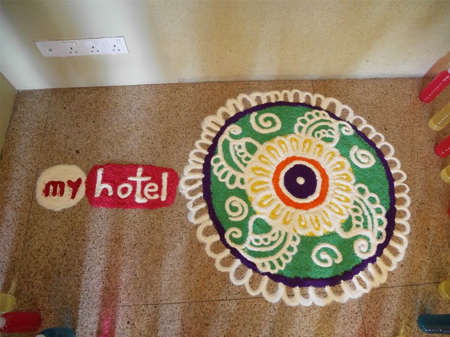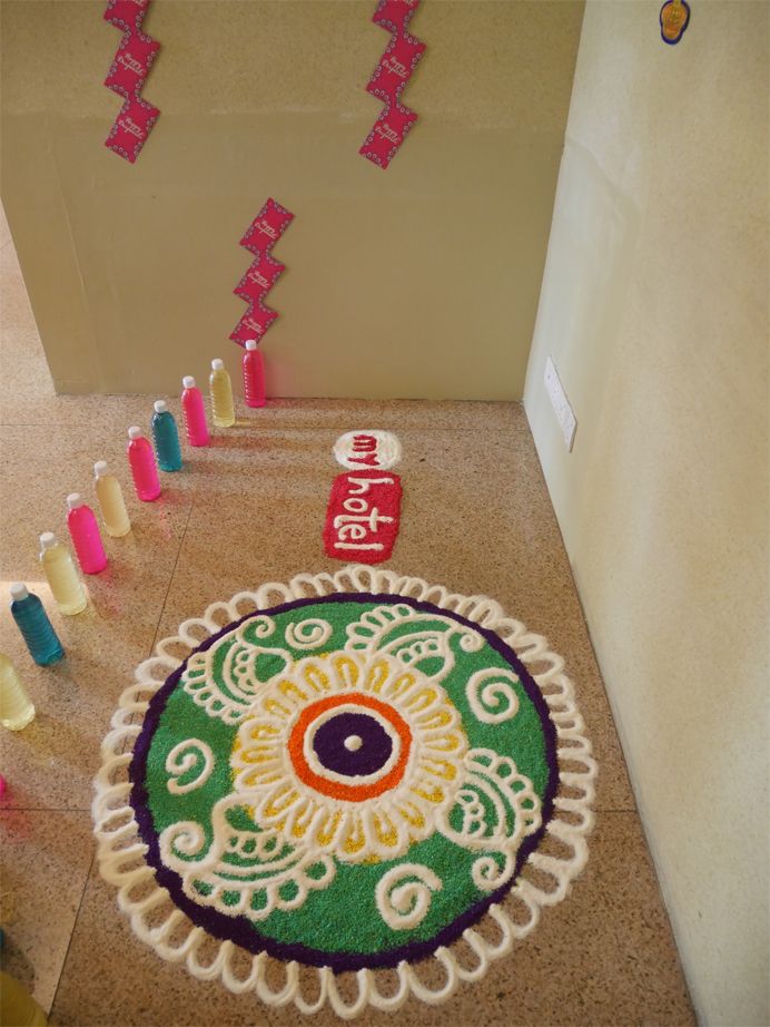 มาช่วงเทศกาลของคนอินเดียที่เค้าจะเอาทรายมาโรยเป็นลายต่างๆพอดี ที่โรงแรมก็ทำด้วย