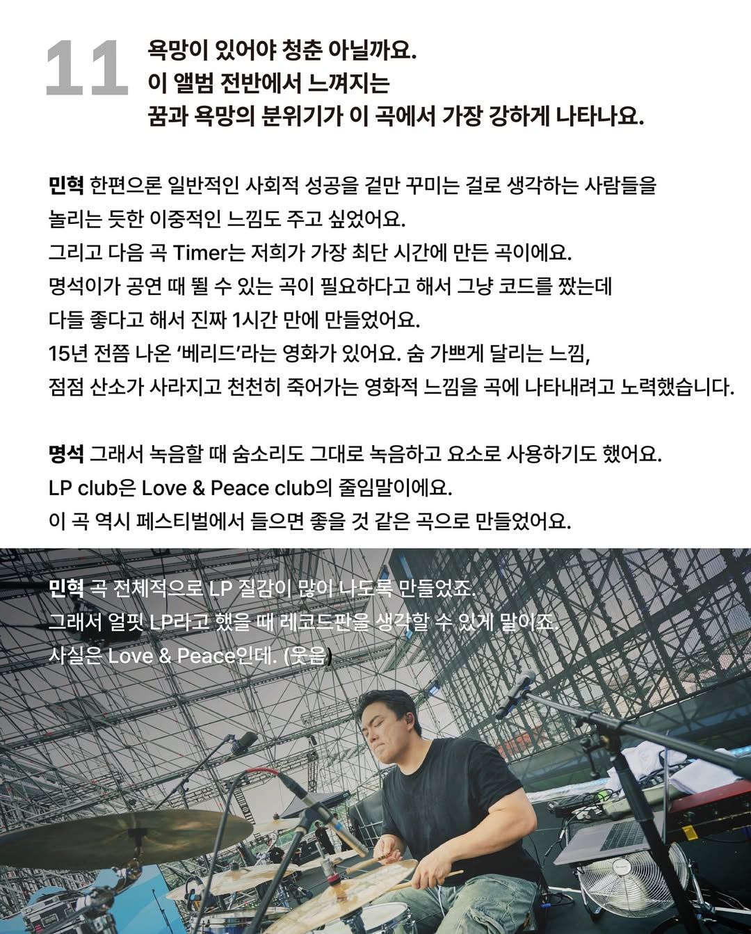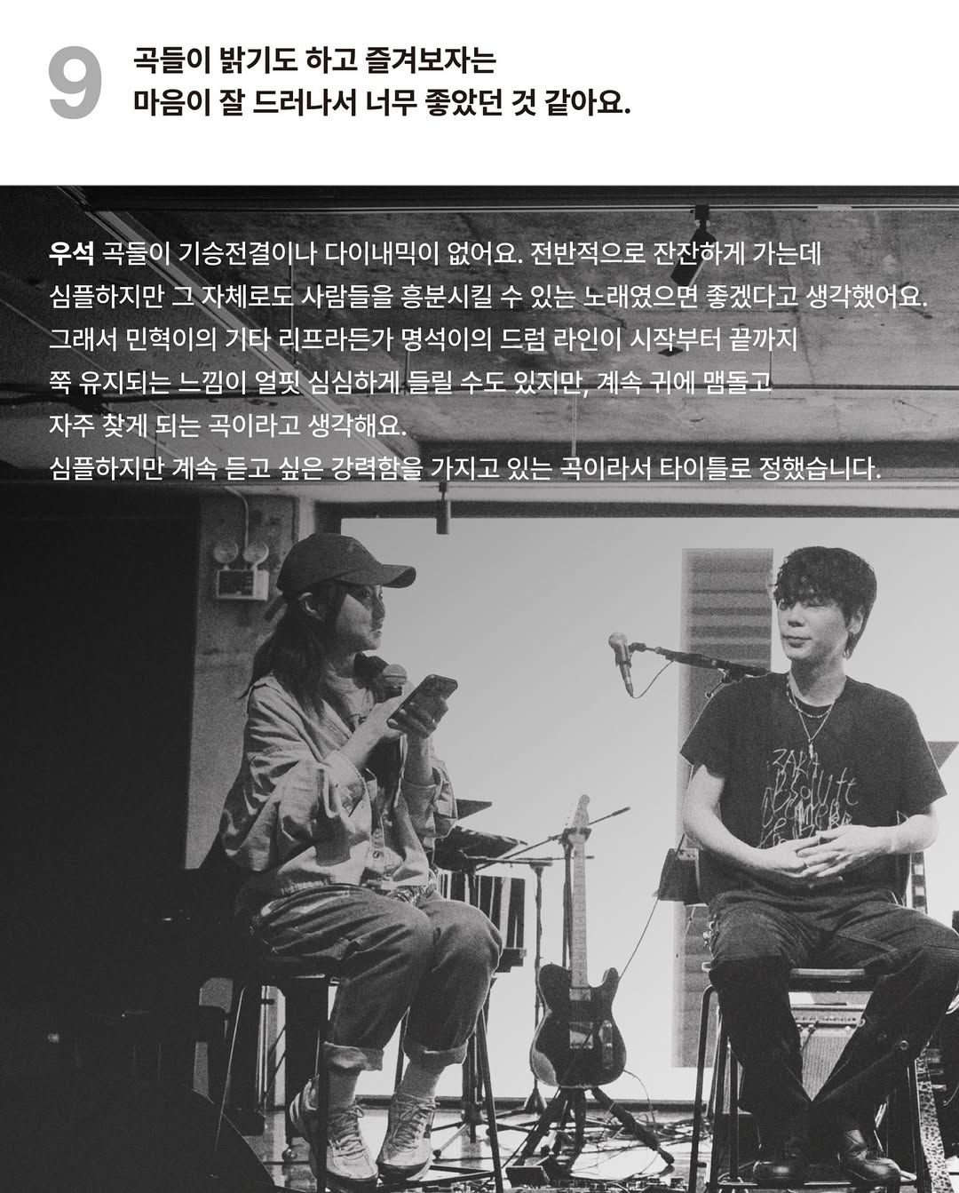 นได้แม้จะเรียบง่ายเช่นริฟกีตาร์ของมินฮยอก หรือไลน์กลองของมยองซอกที่ตั้งแต่ต้นจนจบเหมือนจะซ้ำๆ แต่กลับติดหูมาก ฟังแล้วอยากกลับมาหาอีกเรื่อยๆ เพราะมันเป็นเพลงที่เรียบง่
