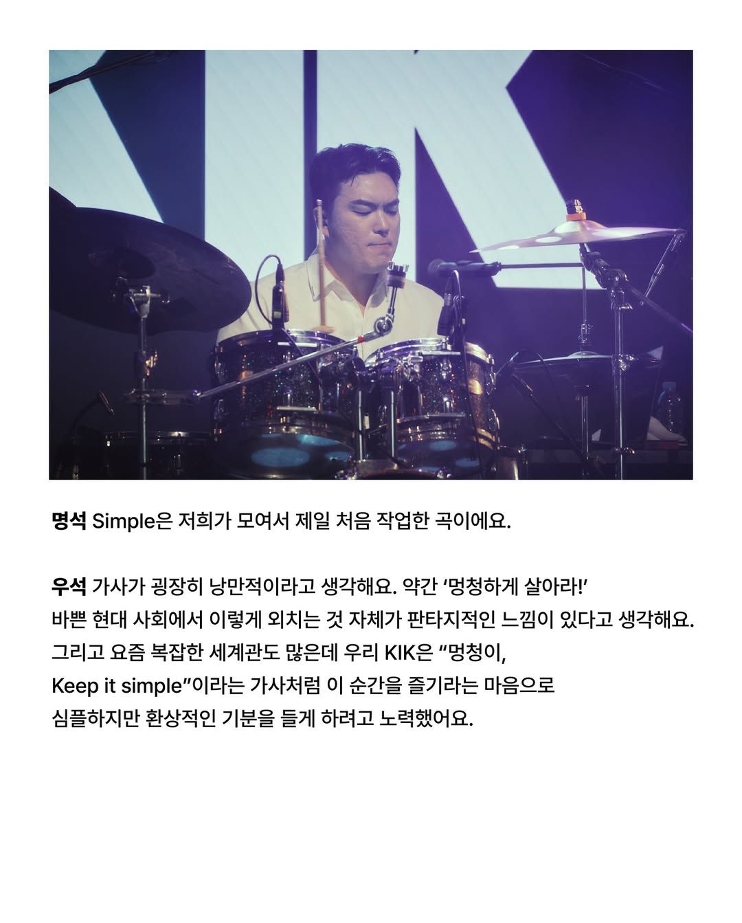 วยโลกทัศน์ซับซ้อนเยอะ แต่ KIK ของเราอยากสื่อแบบตรงไปตรงมาอย่างเนื้อร้อง "멍청이, keep it simple" เพื่อบอกให้สนุกกับช่วงเวลานี้แม้จะเรียบง่าย แต่ก็อยากทำให้รู้สึกแฟนตาซีครั