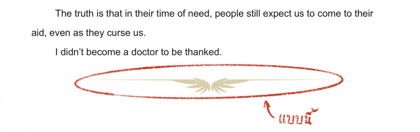 แต่เนื่องจากผ่านไปสองปี จากวัยเรียนกลายเป็นวัยทำงาน ถ้ารอให้แปลเสร็จทั้งเรื่องแล้วลงทีเดียวก็อาจจะใช้เวลานาน เราเลยจะขอค่อยๆ ทยอยลงเป็นส่วนๆ ไปค่ะ ซึ่งไม่ต้องกลัวเสียอรรถรสต้นเรื่อง เพราะเราจะแบ่งพาร์ทตามที่ต้นฉบับตัดด้วยสัญลักษณ์ปีก