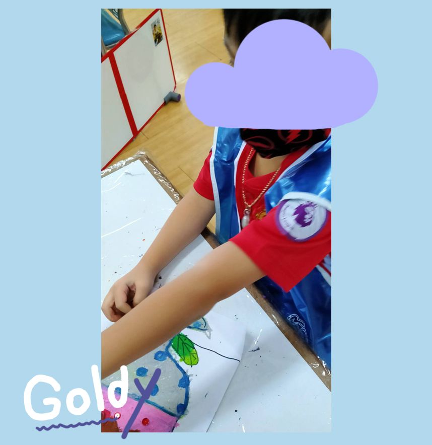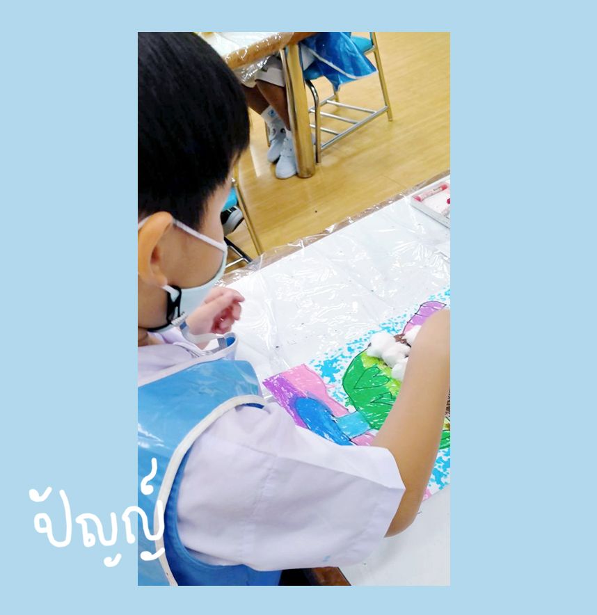 พอระบายสีเสร็จก็ไปตกแต่งต่อ น้องทำตามคำสั่งแบบไม่อิดออด
