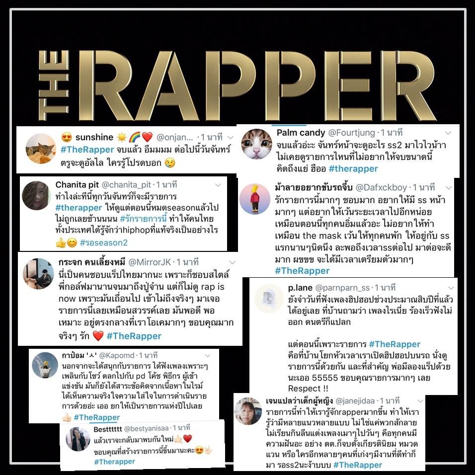 ในขณะที่ Sunnycash ก็เป็นตัวเทพในรายการทีเดียว สกิลการแรพของเดย์โหดมาก ตัวพ่อจริงๆ และบีทของเอ้ถูกใจวัยรุ่น โชว์อินเตอร์ส่งออกได้สบายๆ ค่อนข้างผิดหวังมากกับ Buddhabless หรือสามคนนี้ จะเหมาะทำเพลงตัวเองก็พอแล้ว?? Double P กับสไตล์อาร์แอนด์บี แต่การแรพก็ยังไม่แข็งแรงเท่าที่ควร แถมยังมีผสมร้องเยอะไปในบางโชว์