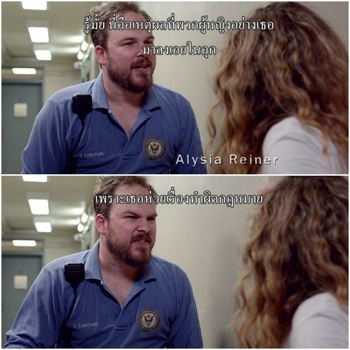 ช่วงแรก ไพเพอร์เอาแต่โทษอเล็กซ์ว่าเป็นต้นเหตุให้ตัวเองต้องมาติดแหง็กในคุก ไม่ยอมรับว่าเป็นเพราะตัวเองนั่นแหละ ตอนช่วยขนเงินเธอก็รู้แก่ใจว่ากำลังทำผิดกฎหมาย แต่ก็ยังทำ ด้วยความรักบังตาบวกกับความคะนองของวัยรุ่นตอนนั้น พอผลของการกระทำมันย้อนกลับมาหา เลยเหมือนโดนตีแสกหน้าจังๆ