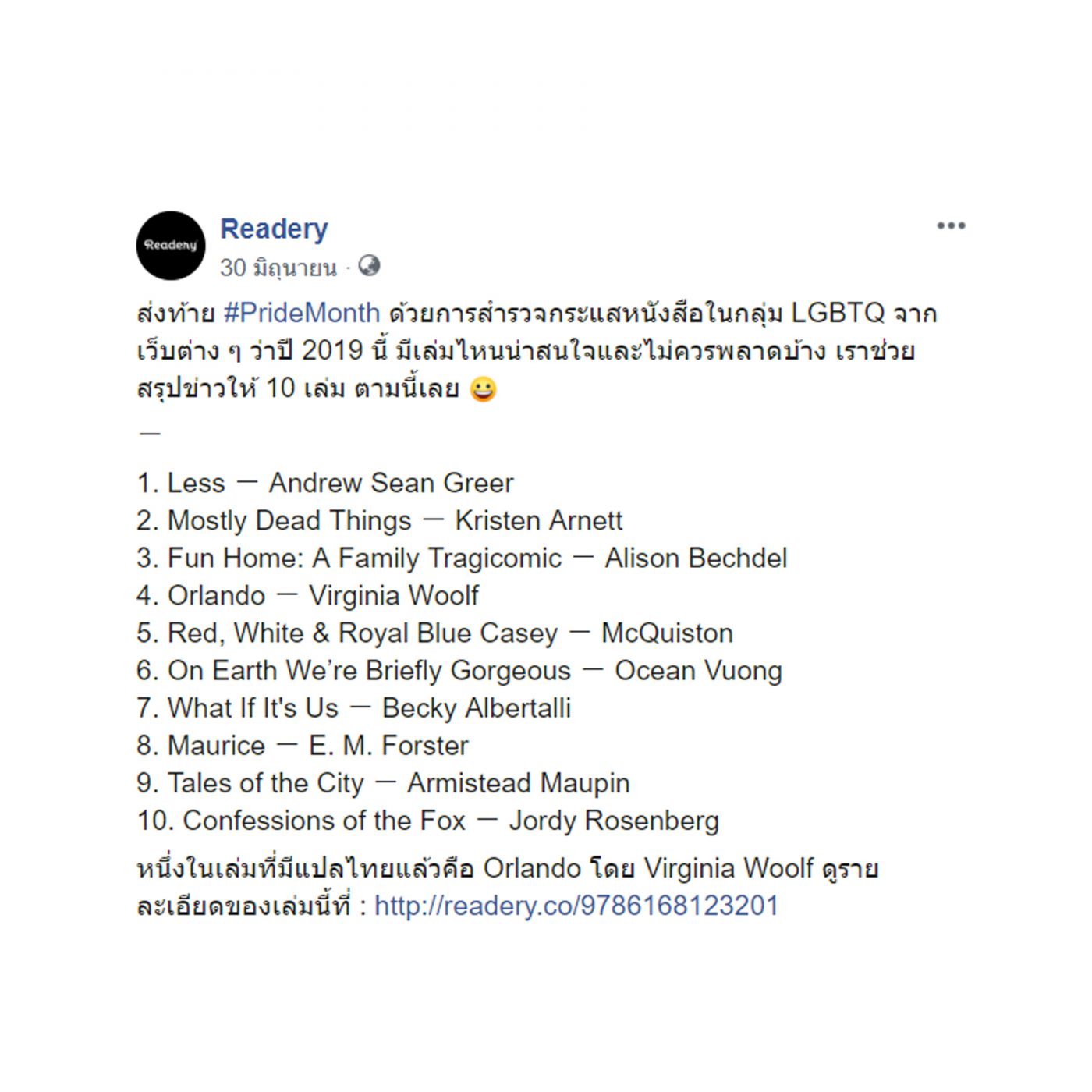เราเปลี่ยนประเด็นที่จะพูดกันอีกรอบ โดยครั้งนี้เราตั้งโจทย์ให้ง่ายขึ้น อย่างการเข้าไปสำรวจกระแสหนังสือที่พูดถึงประเด็นความหลากหลายทางเพศประจำปี 2019 ในเว็บไซต์หนังสือทั่วโลกและนำข้อมูลเหล่านั้นมาย่อยให้ง่ายขึ้น ก่อนที่จะนำมาเล่าในรูปแบบของคอนเทนต์แทน