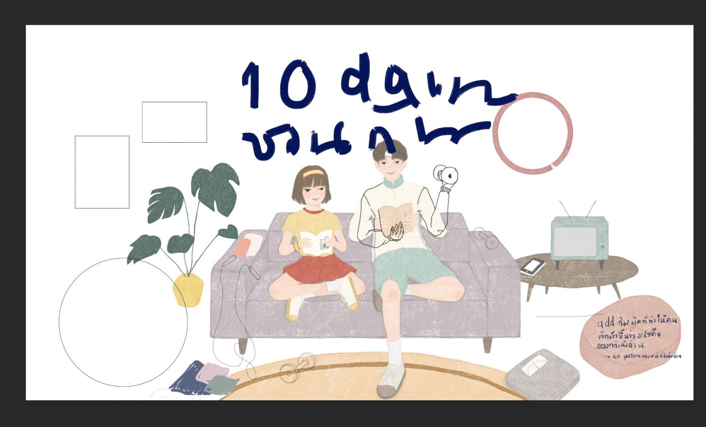 สรุปจากการประชุมครั้งนั้นคือเรากับเนยต้องวาดภาพประกอบรวมทั้งหมด 11 ภาพในรูปแบบคล้าย ๆ กับการ์ตูนช่อง เพื่อใช้ลงในกิจกรรมแต่ละวันและทำให้คนอ่านเห็นภาพรวมว่าจะกิจกรรมนี้เกี่ยวกับอะไรบ้าง