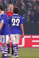 ถ้าอุจิดะนับเลขไม่ผิด ก็สามปีเข้าไปแล้วที่ได้เสื้อมาจากมานูเอล นอยเออร์ กัปตันทีมชาลเก้ในตอนนั้น อุจิดะเซ็นสัญญาย้ายจากญี่ปุ่นไปยังสโมสรชาลเก้ซึ่งอยู่ในลีคเยอรมันตั้งแต่ปี2010 ซึ่งนอยเออร์ก็เป็นคนที่คอยให้ความช่วยเหลือนักเตะญี่ปุ่นตัวจ้อยที่ภาษาเยอรมันก็พูดไม่ค่อยได้ ฟังก็ไม่ค่อยออกอย่างเขาตั้งแต่วินาทีแรกที่เข้าร่วมทีม หากไม่มีนอยเออร์ในตอนนั้น อุจิดะก็นึกไม่ออกเหมือนกันว่าเขาจะผ่านช่วงเวลาอันแสนยากลำบากในการปรับตัวกับสภาพแวดล้อมใหม่ๆได้ยังไง ความทรงจำดีๆมากมายส่วนหนึ่งก็มาจากนอยเออร์ ทั้งตอนแมตช์ชาลเก้แฟรงเฟิร์ตหลังแผ่นดินไหวใหญ่โฮขุ ทั้งตอนฉลองแชมป์เดเอฟเบโพคาล และอื่นๆอีกนับไม่ถ้วน จนนอยเออร์ย้ายไปอยู่บาเยิร์นแล้วยกเสื้อเบอร์1ที่คนตัวโตใส่เล่นให้ชาลเก้เป็นครั้งสุดท้ายให้เขามาแขวนอยู่ตรงหน้าเนี่ยแหละ