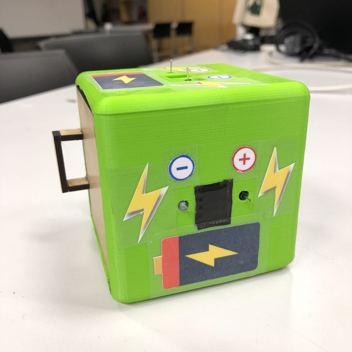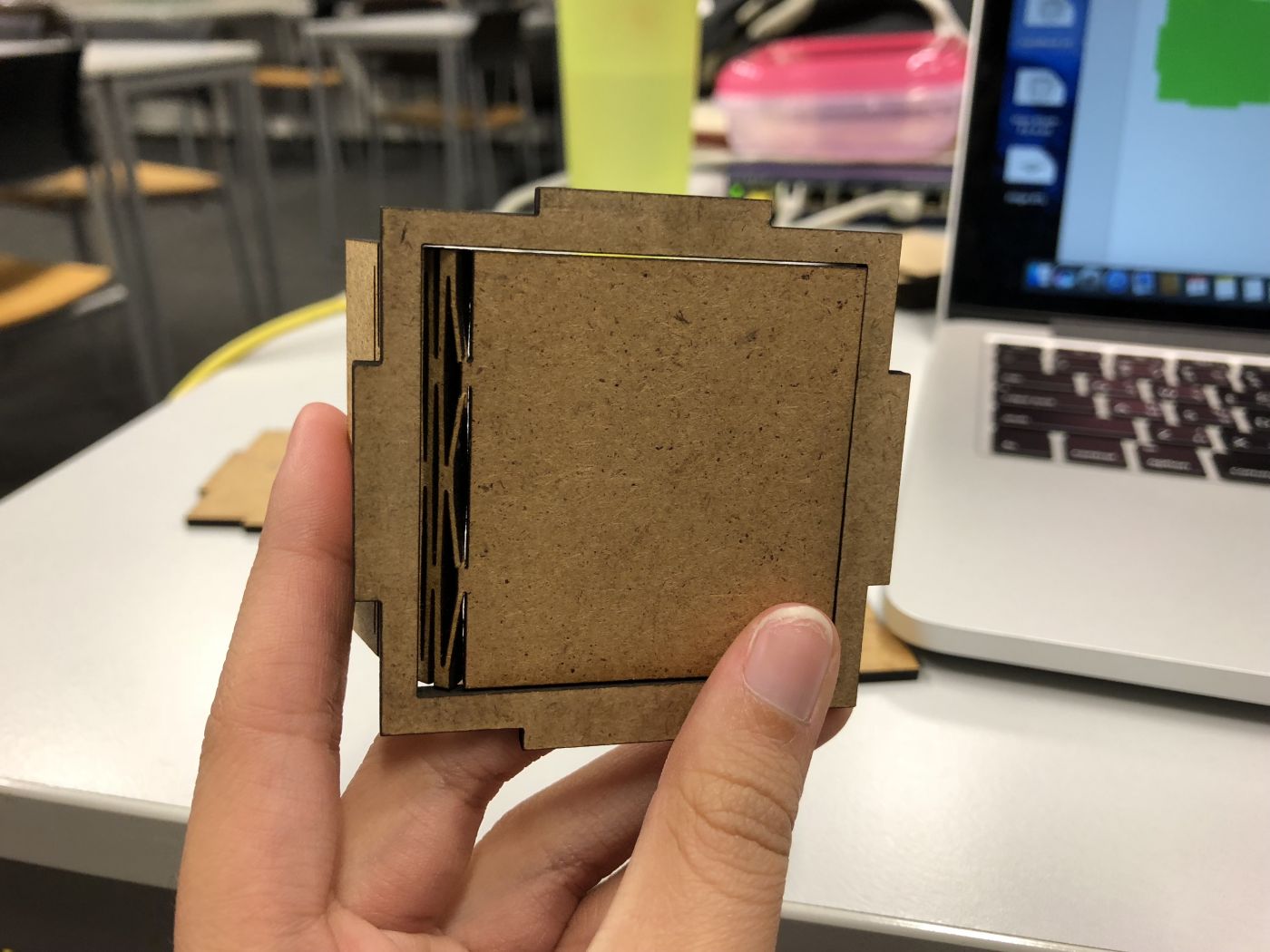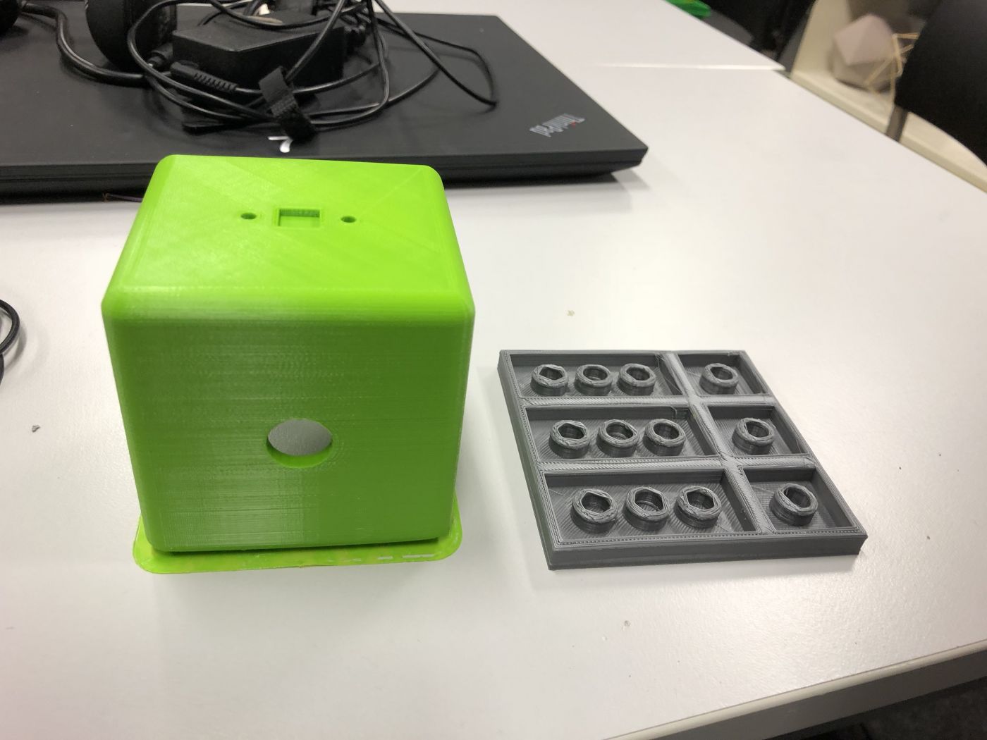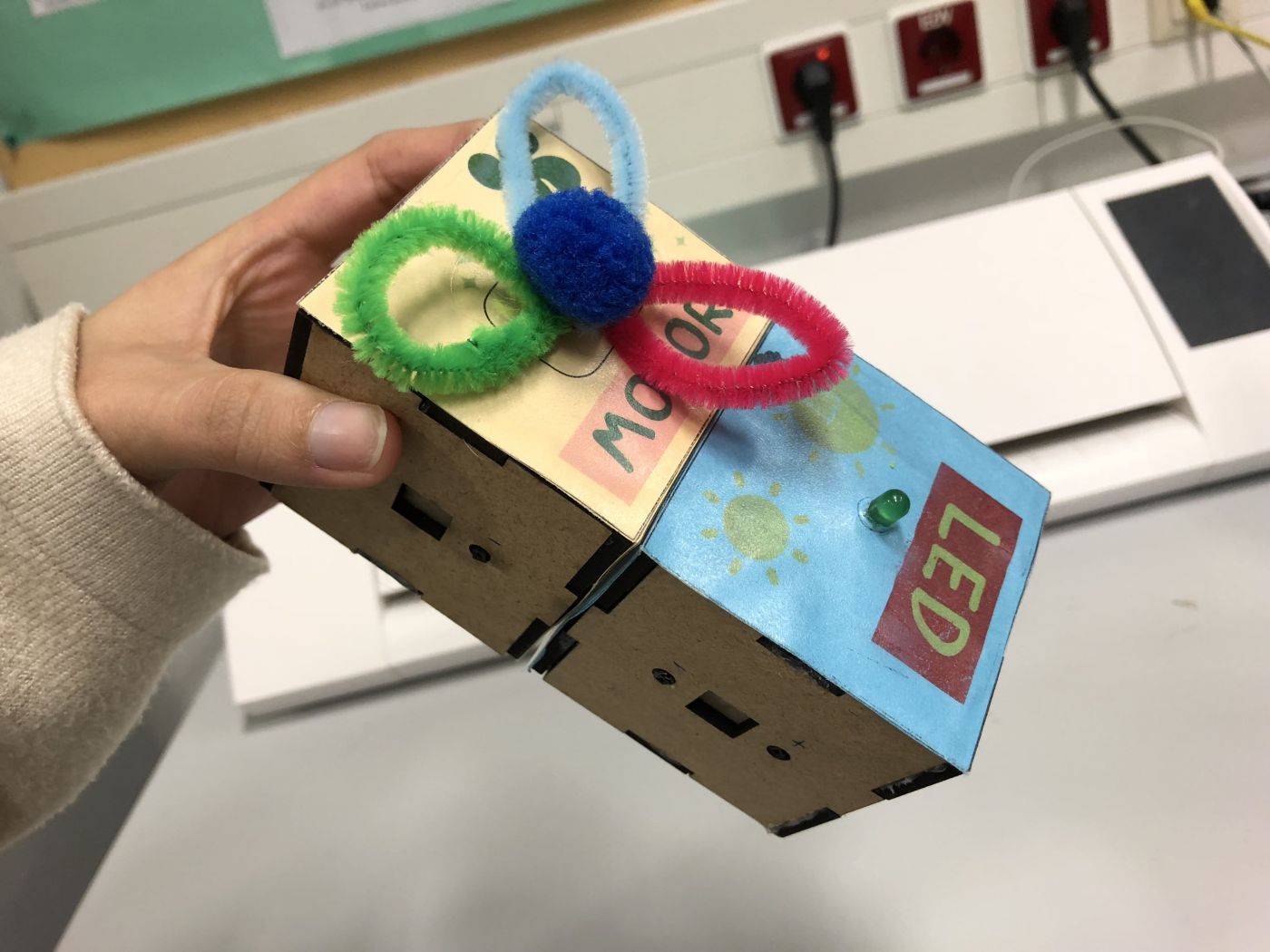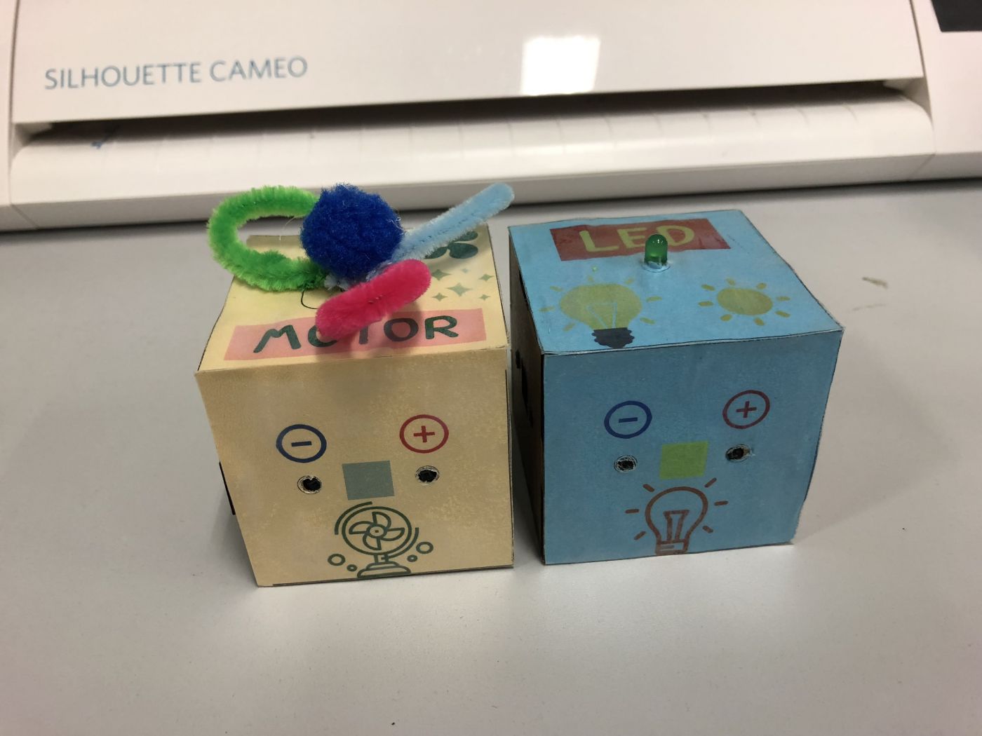 We print the cover design and stick on some side of the block to test. Also, test the flower copter that we make.