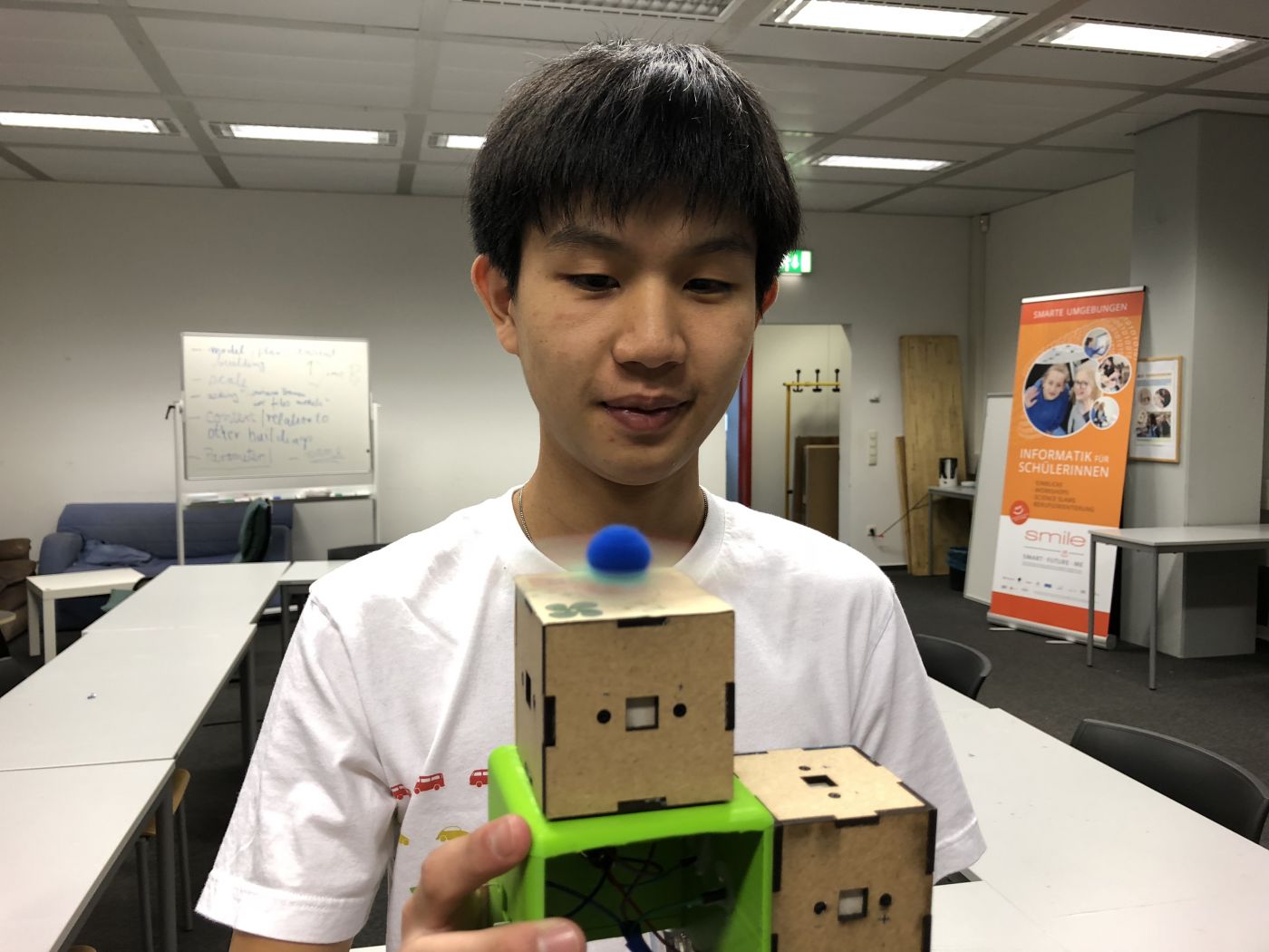 Today we have the meeting of the week at 12.25 pm. We bring our first prototype to present to them. The same as last week Iris made cake for us. Very delicious.