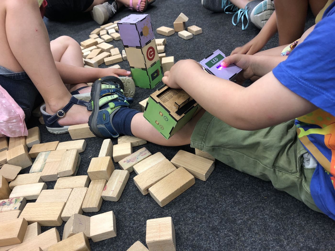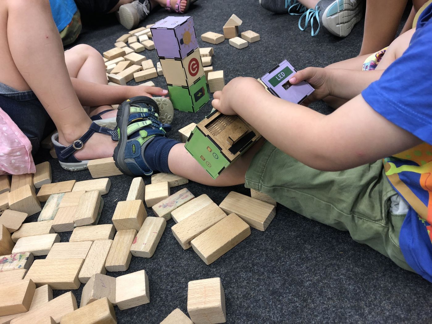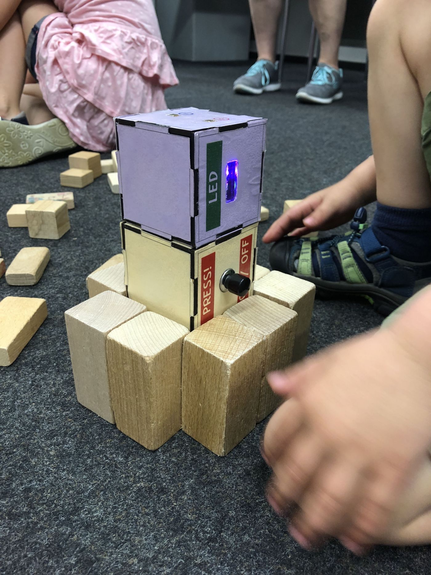 Do they explore the functionalities of the blocks? Do they understand what is happening?- They can light up the LED with 2 blocks in short time but when have the switch block, they explore to construct it in the right way by remembering that the switch need to be in the middle. But I am not sure they understand the electricity or not. Because they are too young.