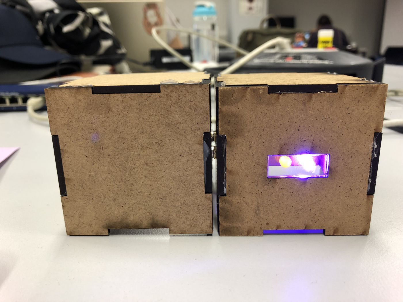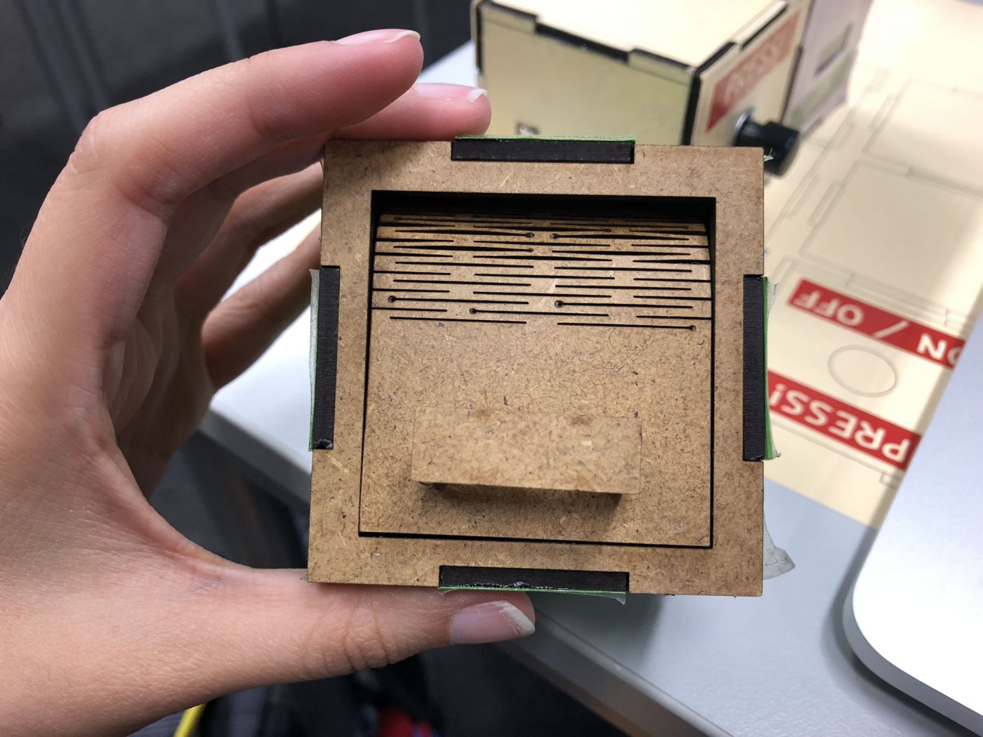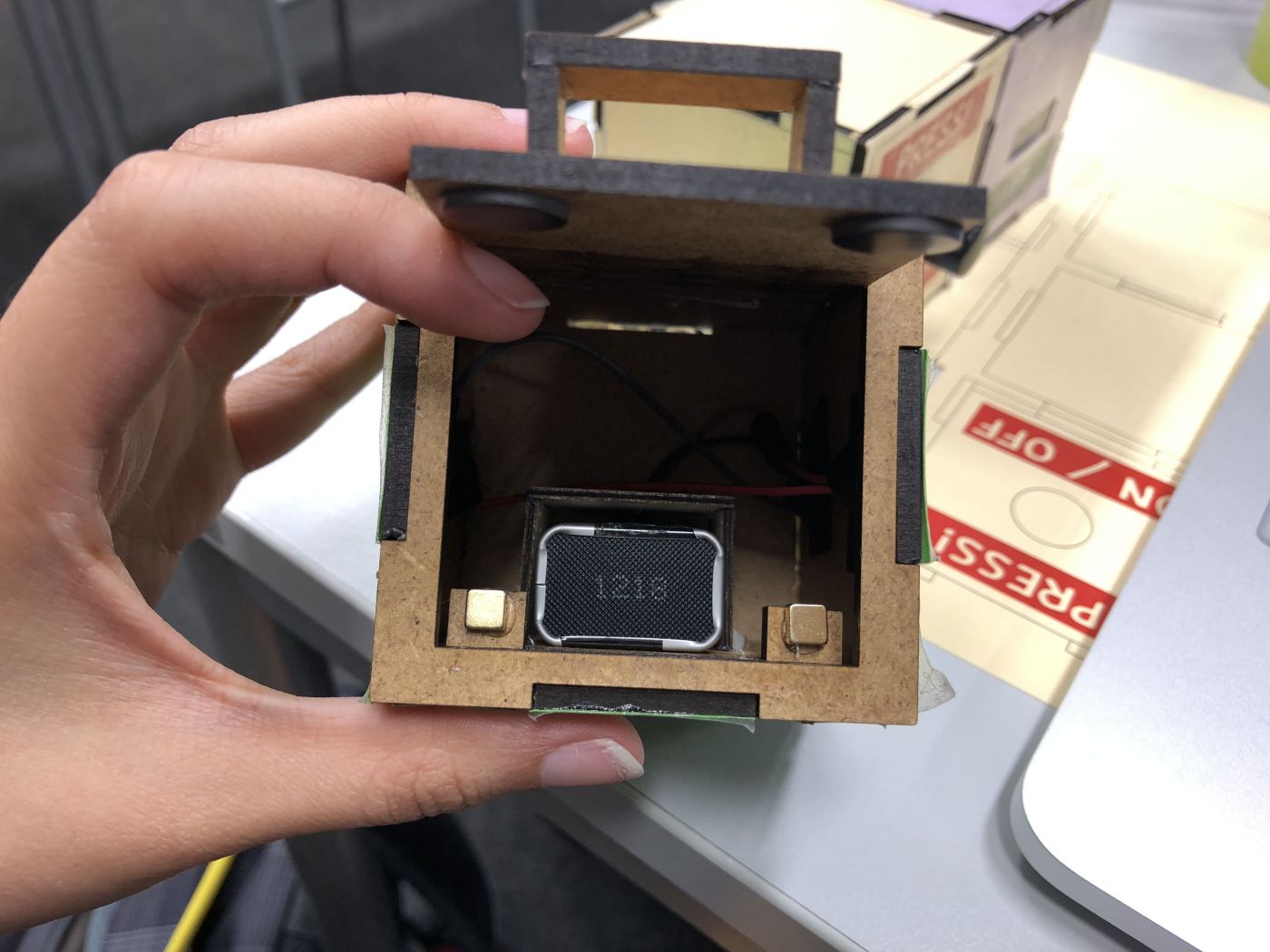 At first, the teacher let them play with their wood blocks for a while and then give our block for them. They try to connect it together with magnet first. Take not too much time finally they can connect 3 blocks in the right way that can press the switch button to turn on/off the LED.