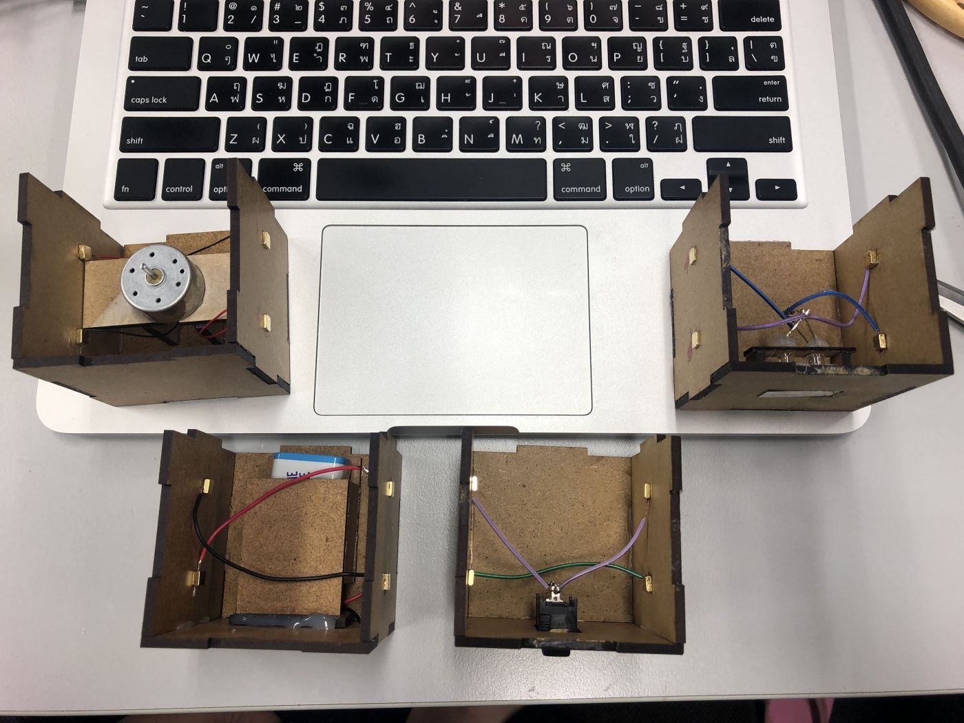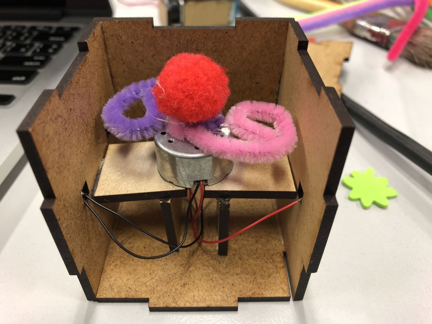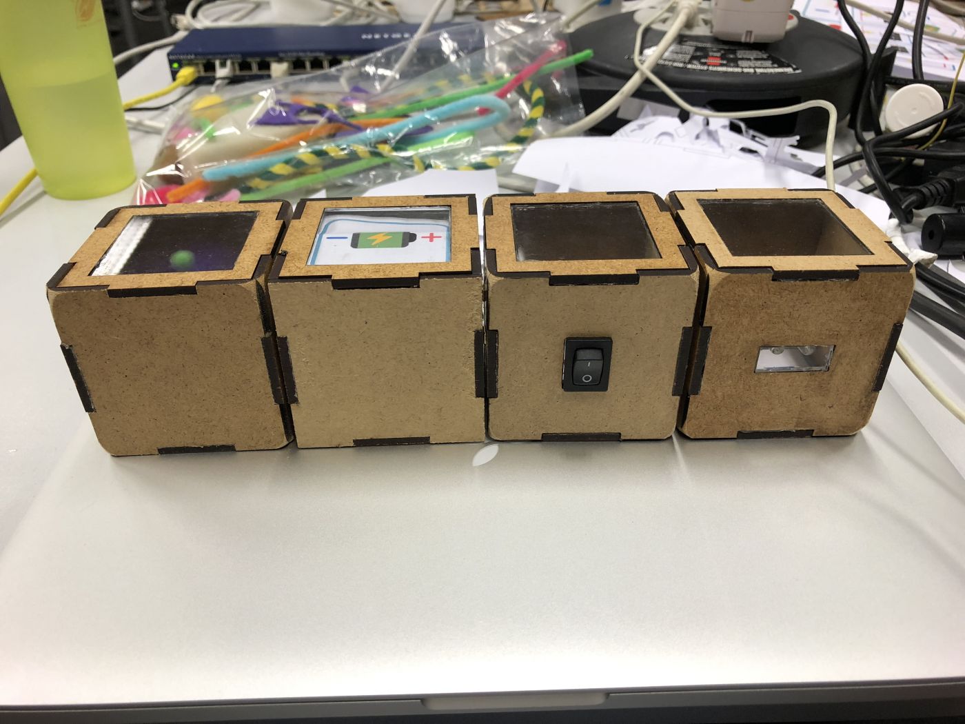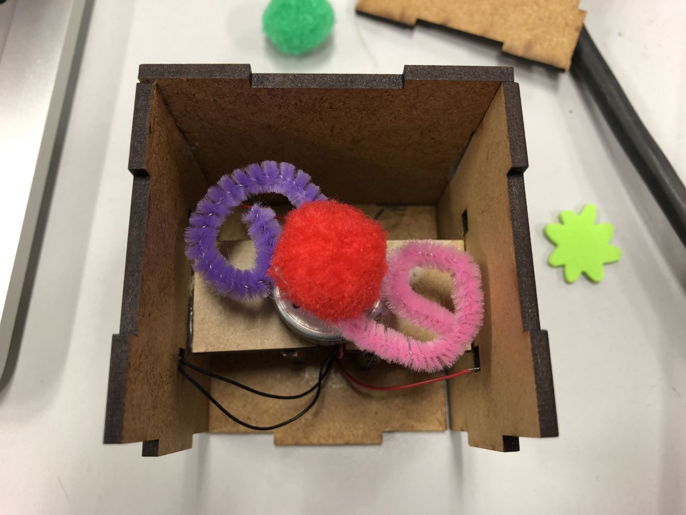 Because this prototype children can see in side the block so, we design some thing to put inside the block for kids can see what happened.