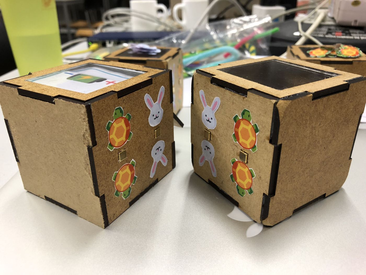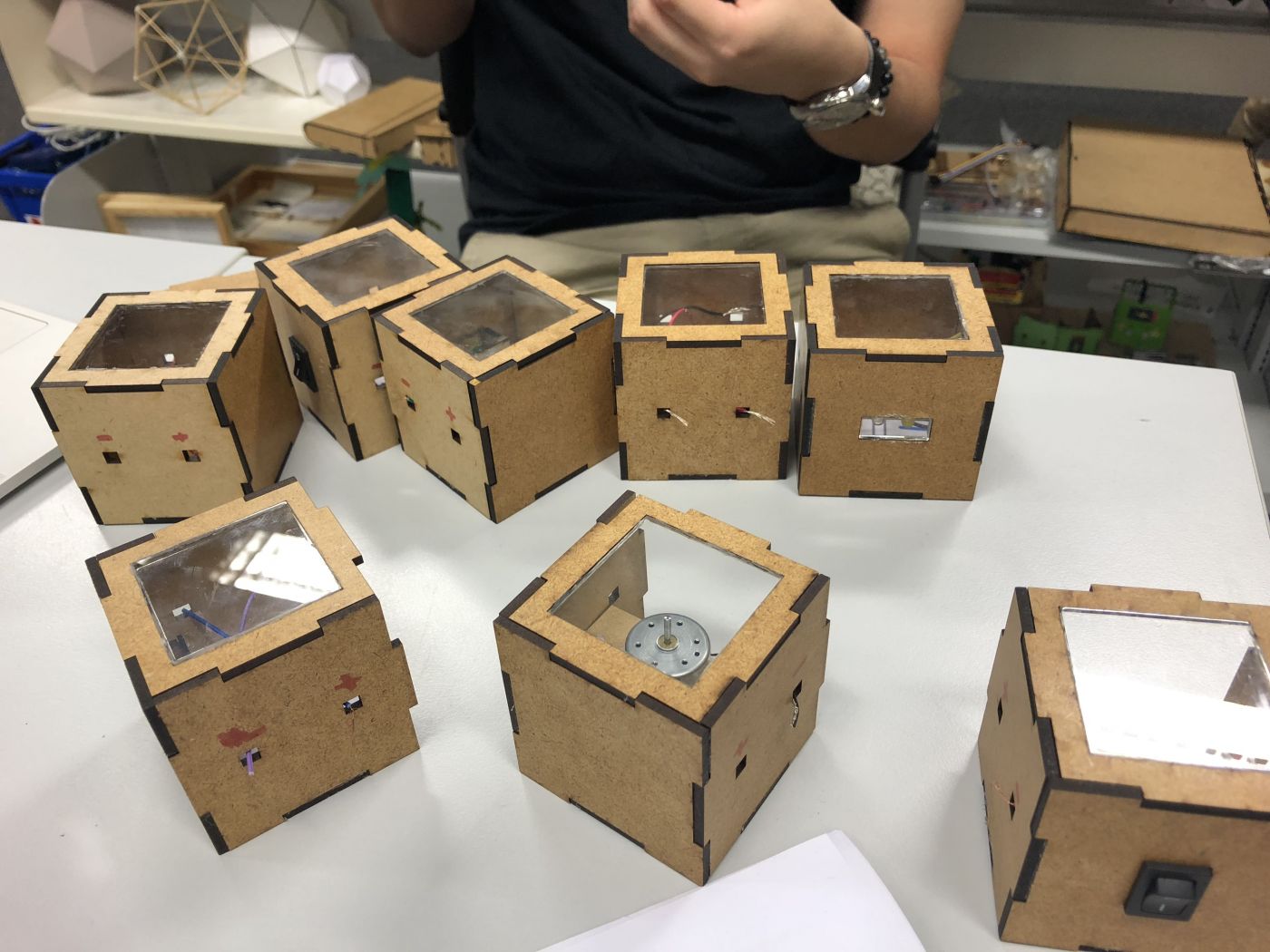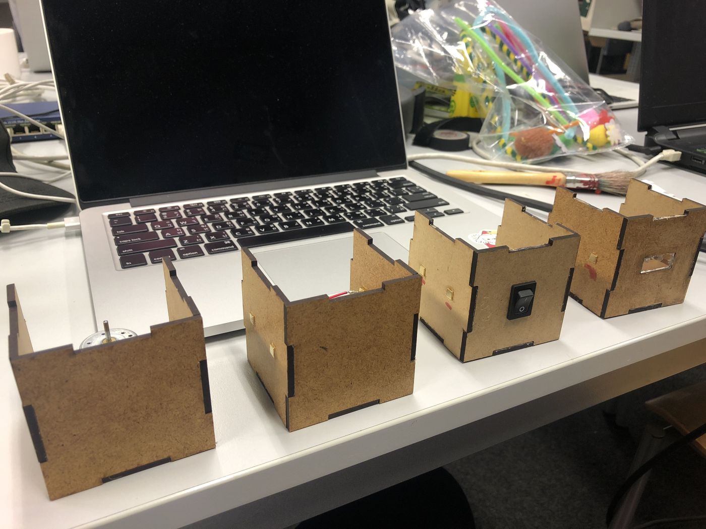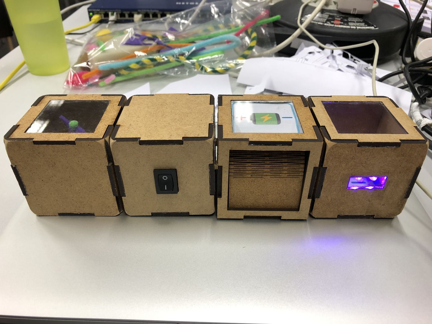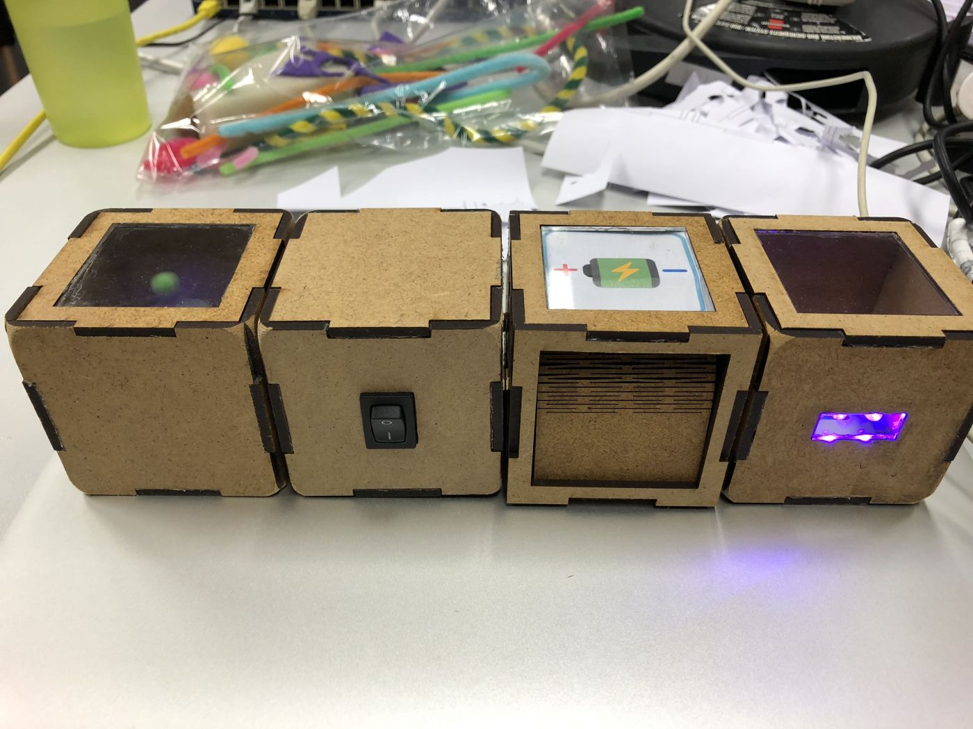 Because this prototype children can see in side the block so, we design some thing to put inside the block for kids can see what happened.