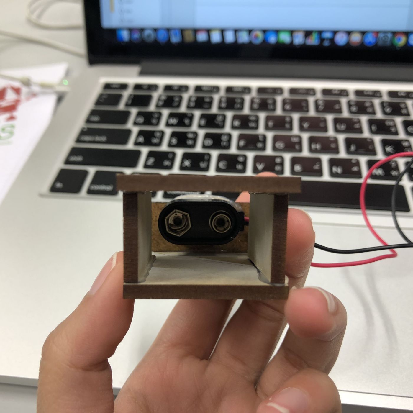The door of battery block is finished too. For this prototype we cut off the handle so that kids will not curious and try to open.