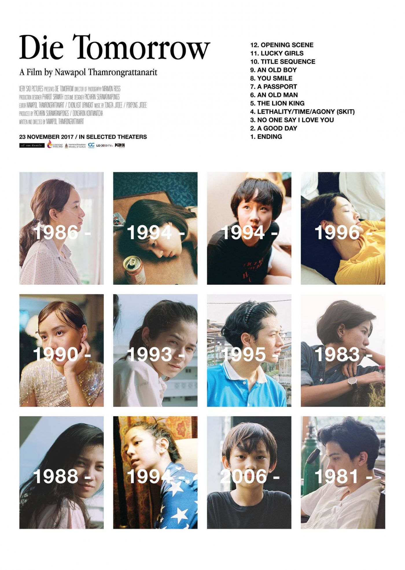 Die Tomorrow หนังบันเทิงคดีกึ่งสารคดี ปรัชญา ของผู้กำกับฝีมือดี ลายเซ็นจัดของ “เต๋อ นวพล”คนนี้จะทำให้คุณรู้คุณค่าของการใช้ชีวิตในทุกๆวินาที (ย้ำว่าทุกวินาทีจริงๆ) ทำให้คุณหาเป้าหมายในชีวิตตัวเองได้และกลับไปบ้านเพื่อไปกอดคนที่คุณรักมากที่สุดในชีวิตไว้แน่นที่สุดก่อนที่จะถึงพรุ่งนี้เช้าแน่นอน