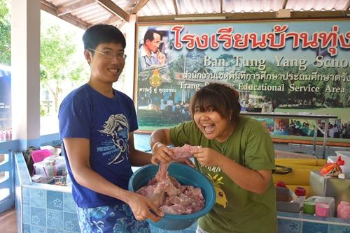 ยังไม่ทันจะได้นั่งพักจริงๆ ก็ต้องล้างจานยามเที่ยง เอาจริงๆ ตรงๆ ได้นั่งอยู่บ้างแหละครับ นั่งหั่นหมู นั่งหั่นผัก นั่งเช็ดจาน 555555 คือนั่งไปด้วยทำงานด้วย TTATT