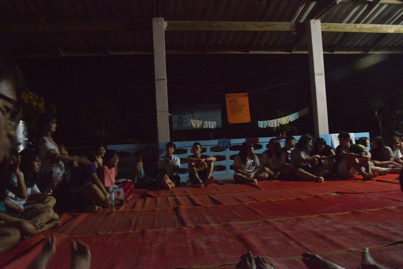 ตอนมาถึงโรงเรียนก็เห็นพี่ก่อสร้าง กับน้องๆ พวกเด็กรร.เล่นบอลกลางฝนกันอย่างสนุกสนาน เพื่อนๆ สาธาที่ทยอยกลับมาก็อยู่ในสภาพเปียกไม่ต่างกัน สรุปพี่เค้าก็เลยให้มาอาบน้ำกันก่อนอาหารเย็น หลังจากอาบน้ำเสร็จเหลือเวลาไม่มากแล้วก่อนจะถึงอาหารเย็น พี่ๆ สาธาเลยตกลงกันว่าค่อยคุยงานกันอีกทีหลังอาหารเย็นละกัน