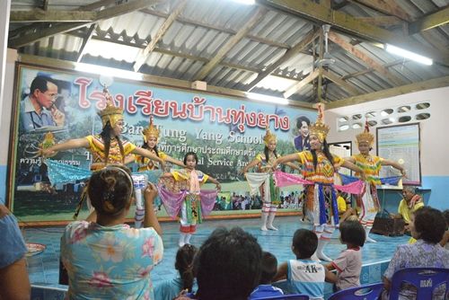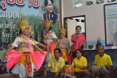 หลังจากท่านผอ.โรงเรียนกล่าวเปิดงาน การแสดงที่ทางโรงเรียนและชุมชน เตรียมมาก็คือ “รำมโนราห์ “ เป็นศิลปวัฒนธรรมของภาคใต้ที่พวกเราไม่มีใครไม่รู้จัก โรงเรียนนี้เคยไปประกวดแล้วได้รางวัลด้วยล่ะครับ การแสดงมโนราห์นั้นปกติแล้วจะแสดงนานอยู่แล้ว แต่คราวนี้นานมากจริงๆ 555555 ระหว่างดูไปก็ต้องนั่งตบยุงไป เพราะพวกเราต้องแสดงหลังจากแสดงนี้เลยต้องจดจ่อกันนิดนึง