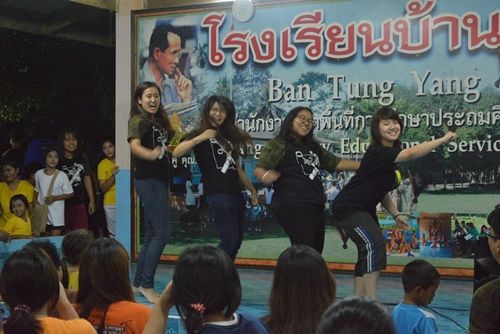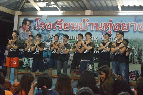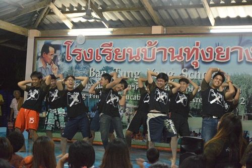 ช่วงค่ำๆ พวกเราต้องนั่งทานอาหารข้างนอกและชมการแสดงที่ทางโรงเรียนและชุมชนเตรียมมาปิดท้ายด้วยการแสดงของพวกเรา ยุงแถวนี้เยอะมากครับ ต้องทายากันยุงดีๆ เลย