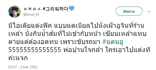 ว่าอย่างหัวเสียก่อนจะเติมน้ำส้มใส่แก้วแล้วจ้องมองอูจินที่โต๊ะตัวเดิม ตาคู่สวยของอูจินกำลังหวานเยิ้ม ใบหน้าคมขึ้นสีแดงกว่าเดิม