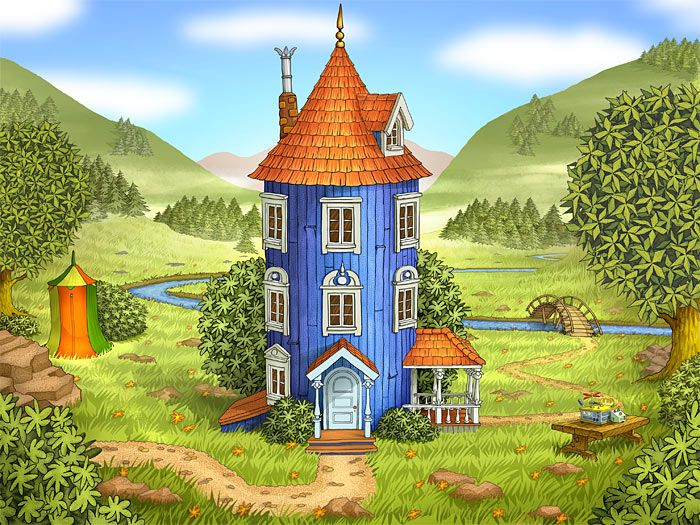 รอบครัวมูมินอาศัยอยู่ในบ้านของมูมิน (The Moominhouse)  บ้านทรงกลมสูง รูปร่างคล้ายปล่องไฟของเตาผิง ตัวบ้านสีฟ้าและมีหลังคาสีแดง เชื่อกันว่าที่บ้านมูมินมีลักษณะเช่นนี้เพราะเจ้ามูมินทั้งหลายอาศัยอยู่ในปล่องไฟเตาผิงของ ทอเวย์ ยาร์นซัน นั่นเอง