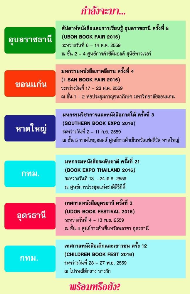 นอกจากนี้ ยังมีงานหนังสืออื่นๆ ทั่วประเทศตามภาพเลยจ้ะ ใครใกล้ที่ไหนก็ไปได้นะ