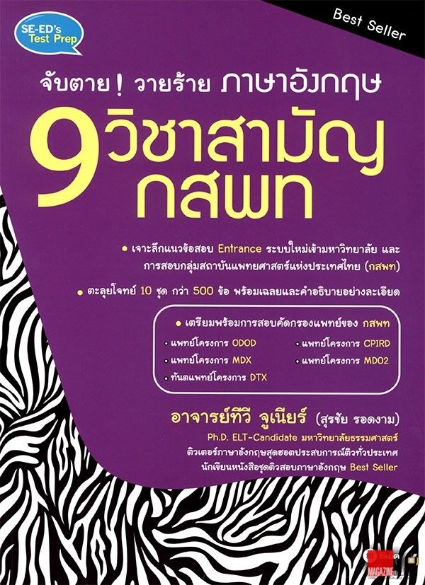 วิชานี้พี่ก็ไม่ได้เรียนพิเศษเลยตั้งแต่ขึ้นม.ปลาย เพราะเรียนสายวิทย์ พี่ก็เครียดมากเพราะก็ไม่ได้เก่งอะไร พี่เลือกอ่านเล่มเขียวของ ดร.ศุภวัฒน์ เล่มนั้นพี่ว่ายากสุดแล้วสำหรับเตรียมสอบ 9 วิชาเพราะบทความจะยาว ซึ่งตอนฝึกพี่ทำคะแนนไม่ดีเลย ไม่เคยเกิน 60 ซึ่งทำหมดเล่มแล้วก็ยังไม่ดีขึ้น พี่เลยตัดสินใจซื้อมาอีกเล่มค่ะ! เล่มเดิมหมือนเดิม ซึ่งก็คะแนนดีขึ้นทั้งที่จำเฉลยไม่ได้เลยนะ และทำให้จับทางข้อสอบได้เร็วขึ้น การฝึกทำข้อสอบต้องจับเวลาทุกครั้งนะคะ !! และต้องซื่อสัตย์ต่อตัวเองเพราะจะทำให้เราตระหนักถึงความพร้อมของเรา นอกจากนี้พี่ก็แนะนำให้ฝึกทำพาร์ทรีดดิ้งจากพวกหนังสือ CU-TEP  บ่อยๆจะได้ชินกับพร์ทนี้ เพราะเป็นพาร์ทที่สำคัญมากในข้อสอบ สุดท้ายคะแนนออกพี่หายเหนื่อยเลยไม่เสียแรงที่ซื้อหนังสือมาทำซ้ำๆ เกินกว่าทุกครั้งที่ฝึกทำค่ะ