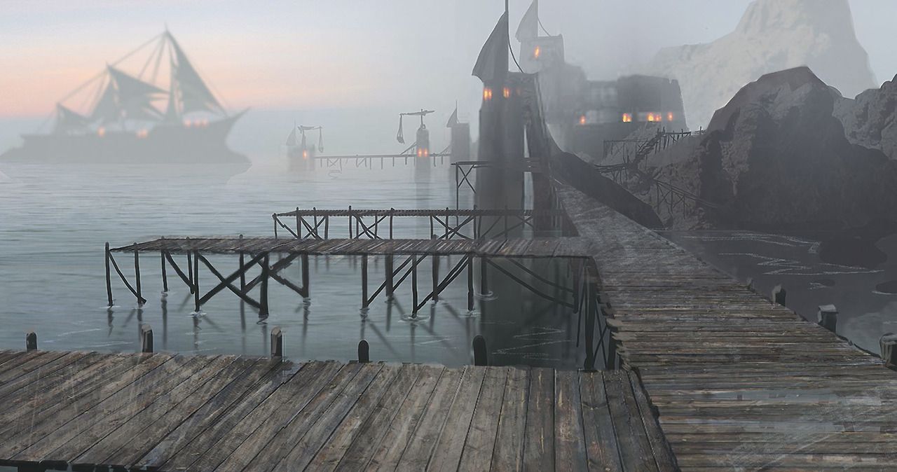 (ภาพท่าเรือของริเวน จาก Dragon Age Wiki)