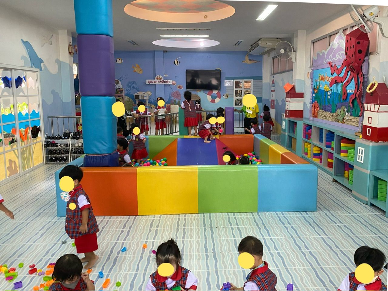 ที่โรงเรียนนี้ตอนเช้าก่อนเข้าแถว 7.30 เด็ก ๆ ทุกคนจะได้ลงมาเล่นที่สนามเด็กเล่นกัน และมีคุณครูคอยดูแลอยู่ทุกมุมเลย เมื่อถึงเวลาต้องเข้าแถวก่อนถึงเวลาเคารพธงชาติ จะมีคุณครูมานำเด็ก ๆ ทำกิจกรรมต่าง ๆ แตกต่างกันแต่ละวัน เช่น เต้น ออกกำลังกาย หรือเรียนรู้ภาษาอังกฤษกับทีชเชอร์ (คุณครูต่างชาติ) ระหว่างนี้ ผอ. ก็มาคุยกับเราเรื่องสิ่งที่เราต้องทำตลอดการฝึกงาน ผอ.บอกว่าจะให้เราลองเวียนไปดูแลทุก ๆ ชั้นตั้งแต่เตรียมอนุบาลถึงอนุบาล 3 เพราะแต่ละห้องมีวิธีการสอนไม่เหมือนกัน เราจะได้อยู่กับแต่ละห้อง 1 อาทิตย์ซึ่งหลังจากที่เราลองวางแผนดูแล้วอาจจะไม่ได้อยู่ครบทุกห้อง เพราะมีเวลา 3 เดือนเท่านั้น แล้วผอ.ก็ยังยื่นอีกตัวเลือกให้เราว่าหรืออยากจะอยู่ห้องไหนก็ได้ ตามที่สบายใจเลย แต่เราเองก็คิดว่าอยากลองดูพัฒนาการของเด็ก ๆ แต่ละช่วงวัยด้วย จึงตกลงแผนตามนี้