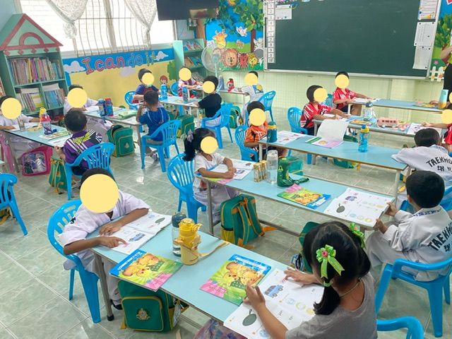 สำหรับโรงเรียนนี้เราคิดว่าหลักสูตรคงเน้นการเรียนมาก ๆ ค่ะ เพราะอนุบาลเรียนเขียนทั้งตัวอักษรภาษาไทยภาษาอังกฤษ และตัวเลข รวมถึงเรียนการอ่านถึงสองคำขึ้นไป (เรามองว่ายากมาก ๆ สำหรับอ.2) ซึ่งหมายความว่าเด็ก ๆ ที่นี่จะมีพัฒนาการที่ไปเร็วมากด้วยหลักสูตรการเรียน และยังมีวิชาเรียนภาษาอังกฤษ 2-3 วิชาค่ะ กิจกรรมอื่น ๆ จึงค่อนข้างน้อย เราเลยไม่ค่อยมีโอกาสได้ทำสื่อการสอนเพราะคุณครูเตรียมเอาไว้เรียบร้อยแล้ว หน้าที่ของเราก็จะเป็นการช่วยดูแล จัดระเบียบ หรือเป็นเพื่อนเล่นกับเด็ก ๆ ระหว่างพัก