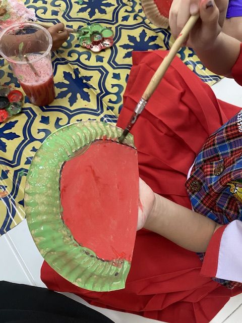 กิจกรรม ‘อาหารดีมีประโยชน์’ จัดทั้งสองวัน วันนี้เราได้ลงมาดูกิจกรรมตอนเช้าพร้อมกับห้องอ. 3/1 ค่ะ มีการแสดงเมโลเดี้ยนเหมือนเมื่อวาน และต่อด้วยการแสดงเต้นของ อ.1 และ อ.2 กับ อ.3 เต้นเพลงส้มตำ พอได้ดูแล้วก็รู้สึกเอ็นดูความน่ารักที่เป็นธรรมชาติของเด็ก ๆ มากเลย 🍅 ช่วงสายก็จะเป็นคิวห้องของเราลงมาทำกิจกรรมค่ะ มีทั้งซุ้มให้ความรู้เกี่ยวกับอาหาร 5 หมู่ , เวิร์คช็อปงานศิลปะ ทำกระเป๋าแตงโม เราได้ช่วยเด็ก ๆนั่งระบายสีและทำแทนในส่วนของน้องที่ไม่มาโรงเรียนวันนี้ แล้วเด็ก ๆ ก็ยังได้ทำเกี๊ยวกันด้วยค่ะคุณครูจะห่อแป้งมาให้เรียบร้อย แล้วให้เด็กปั๊มแม่พิมพ์ลงบนแผ่นเกี๊ยวเป็นรูปต่าง ๆ วันนี้ข้าวกลางวันเราเลยได้กินเกี๊ยวแสนอร่อยแทน 🥟🥟🥟