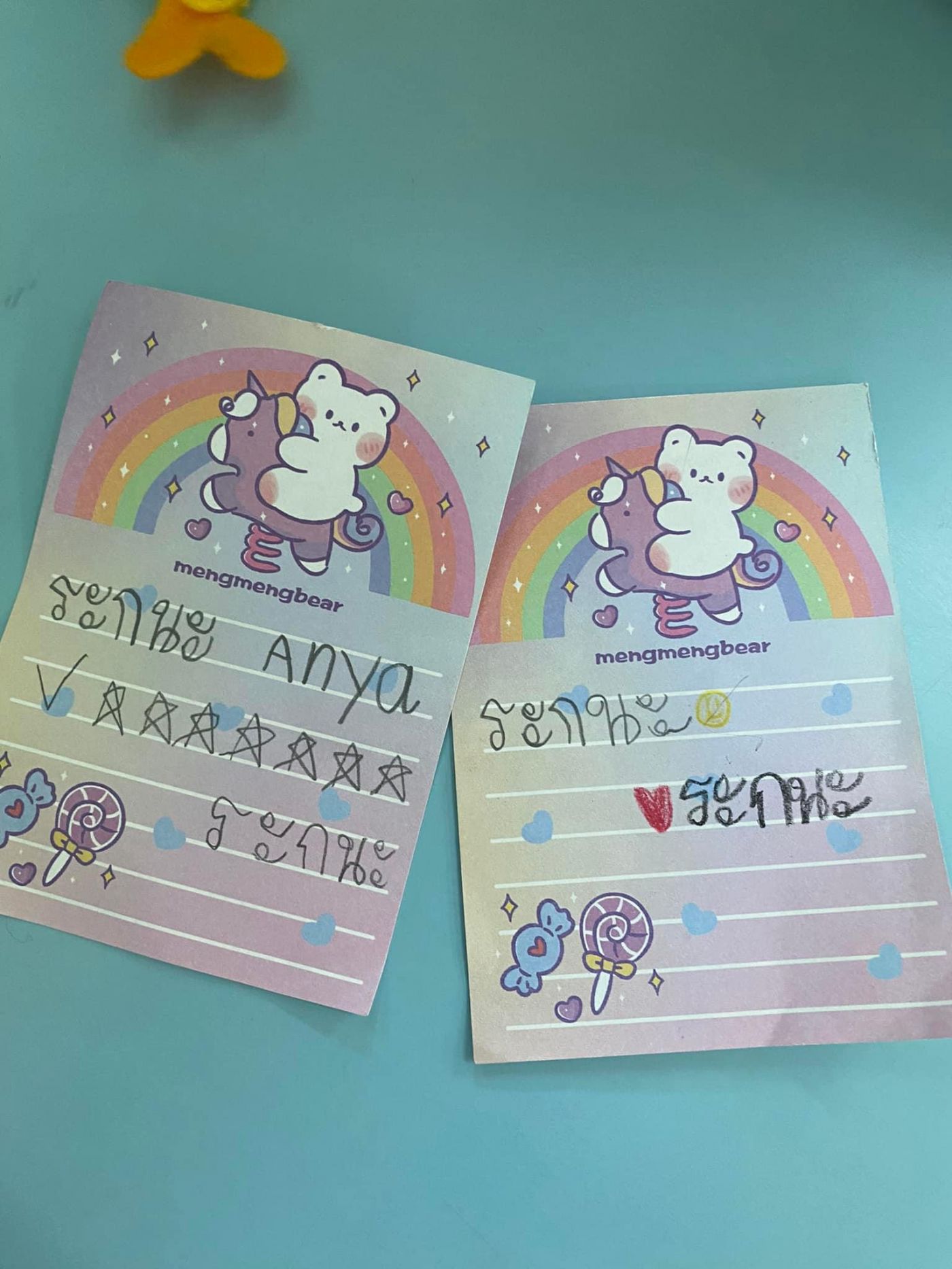 จากที่เราสังเกตการเรียนการสอนรู้สึกว่าเรียนเยอะและค่อนข้างแอดวานซ์สำหรับอ.3 คือมีการเรียนเขียนตามคำบอก บวกเลข ลบเลข บางห้องเรียนสัญลักษณ์มากกว่าน้อยกว่า และอ่านภาษาไทยประโยคยาว ๆ 4 คำขึ้นไป ไม่ค่อยมีกิจกรรมวาดรูประบายสี ก็จะมีทั้งเด็กที่เก่งมาก ๆ ไปตามการสอนได้ทันและเด็กที่เขียนหนังสือไม่ได้เลยต้องคอยควบคุม เราเลยได้ทำหน้าที่สอนบ้างแต่เป็นแบบตัวต่อตัว ถ้าคนไหนเขียนไม่ทันเราจะลงไปช่วยแทนค่ะ มีทั้งสอนเขียนภาษาไทยและสอนบวกลบเลข เราก็เข้าใจคนที่ทำไม่ได้เพราะเรียนเกินช่วงวัยไปมาก ๆ แต่ก็ต้องพยายามสอนให้ตามทันเพื่อนให้ได้ ซึ่งมันค่อนข้างยากเลยเหมือนกันสำหรับทั้งเด็กและคนสอน เราเลยมองว่าอยากให้เด็ก ๆ ที่นี่ได้ลองทำกิจกรรมอย่างอื่นบ้าง เลยเอางานสื่อผ้าที่เราเคยทำในวิชาสื่อเสริมประสบการณ์มาให้เล่นระหว่างพัก ผลก็คือเด็ก ๆ ชอบมาก ๆ เราคิดว่าของเล่นที่เราทำจะเล่นได้น้อย แต่เด็ก ๆ ก็เอาไปเล่นกับเพื่อน สร้างจินตนาการกันสนุกเลย วันอื่น ๆ ก็ยังถามหากับเราว่าจะเอามาให้เล่นอีกไหม ดูน่าจะติดใจค่ะ 😂 เราเองก็ดีใจที่อย่างน้อยให้เด็ก ๆ ได้มีความสุขกับการเล่นบ้างโดยที่เราเป็นคนมอบให้