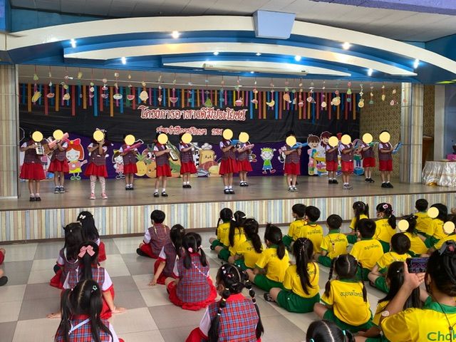 วันนี้มีกิจกรรม ‘อาหารดีมีประโยชน์’ ที่เราเห็นว่าเตรียมงานและซ้อมเต้นกันมาตั้งแต่หลายอาทิต์ก่อน เป็นกิจกรรมที่มีทุกปี เพื่ออบรมเด็ก ๆ เกี่ยวกับการทานอาหารและให้ความรู้เกี่ยวกับการทานอาหาร พอดีกับที่เราอยู่ชั้นอ.3 เลยได้ลงมาอยู่ดูกิจกรรมเปิดงานช่วงเช้า จะเป็นวงเมโลเดี้ยนของอ.2 และ อ.3 ขึ้นมาแสดงก่อน เล่นกันเก่งมาก ๆ เลยค่ะ จนเราแอบสงสัยว่าคุณครูสอนได้ยังไงในเวลาเท่านี้และเด็ก ๆ ทำได้ยังไง ❓