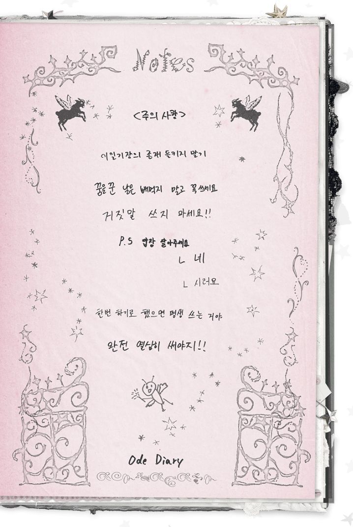 ทั้งหมดนี้เป็นข้อความจาก Ode Diary ทุกอย่างจบลงที่แอนธีรอสลงไปยังโลกมนุษย์ เพื่อที่จะไปทำให้คำอธิษฐานที่อีรอสเฝ้ามองอยู่บ่อยครั้งเป็นจริง นอกจากจะมี Ode Diary ให้ได้อ่านแล้ว ยังมี Memo ที่บันทึกเหตุการณ์บางอย่างไว้ด้วย มีทั้งหมด 12 โน๊ต แต่ว่ามีบางอันที่ถูกล็อก ต้องใช้รหัสถึงจะเข้าไปอ่านได้ โดยรหัสก็ได้ถูกใบ้มาในโพสต์ของ nctwish_official
