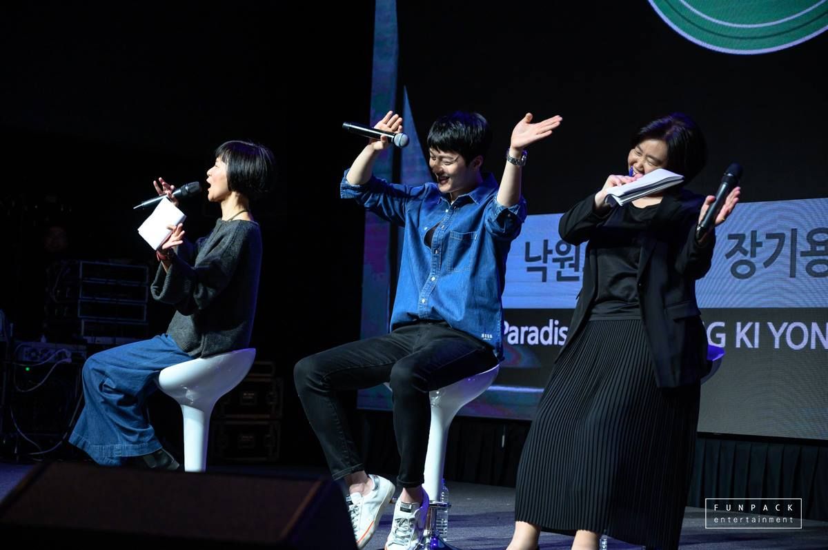 จากนั้นก็เข้าสู่การพูดคุยเกี่ยวกับผลงานต่างๆ ที่ผ่านมา ซีรีส์ 3 เรื่องที่เป็นที่รู้จักในไต้หวัน ได้แก่ Go Back Couple, My Mister และ Come and Hug me แล้วก็มีกิจกรรมเล่นเกมกับแฟนๆ ด้วยค่ะ เป็นการให้สุ่มเลือกซีนในแต่ละเรื่องมาแสดงคู่กับกียงของเรานั้นเอง โดยเกมนี้ได้ผู้โชคดีมา 2 คน คนหนึ่งได้เล่นฉากในเรื่อง Go Back Couple เป็นฉากที่นางเอกใส่รองเท้าส้นสูงเดินลงเนินมาแล้วบังเอิญเจอรุ่นพี่นัมกิล แต่ไม่สามารถหยุดได้
