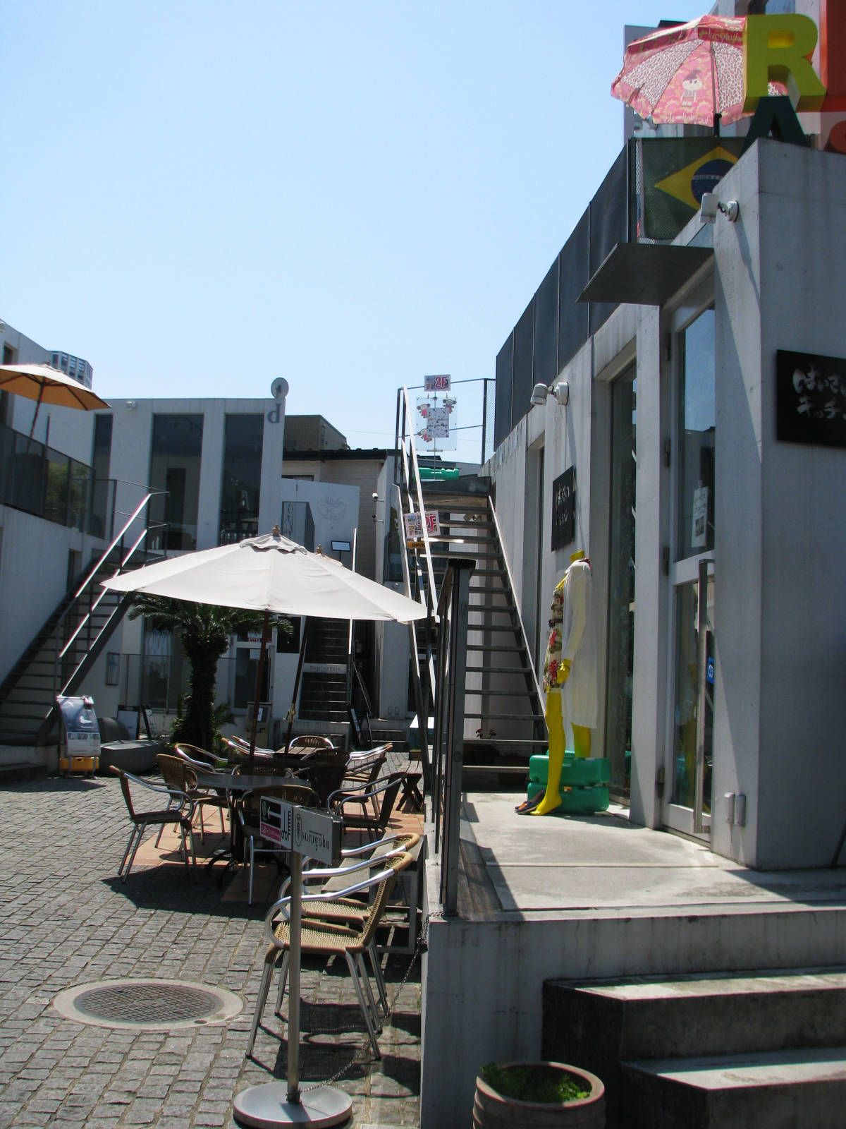 เดินย่านนี้จนเหน็ดเหนื่อย เลยเดินไปเจอคาเฟ่ร้านนึง ต้นไม้เยอะดี ชอบต้นไม้อยู่แล้ว เลยแวะซะหน่อย เดินเข้าไปข้างในก็จะมีคาเฟ่ย่อยๆอีกสามสี่ร้าน แต่ถ่ายมาแค่รูปเดียว เบื่อตัวเองตรงนี้เหมือนกัน เวลาไปเที่ยวไหนละถ่ายรูปน้อยมาก ณ เวลานั้นเราก็จะคิดว่า เออ มองด้วยตาตัวเองนี่แหละดีสุด ถ่ายแค่ไม่กี่รูปให้พอจำบรรยากาศได้ก็พอ แต่เวลากลับจากเที่ยวแล้วมาเปิดๆรูปดู ก็รู้สึกว่า ถ่ายน้อยไปอ่า บางทีนึกไม่ออกว่า ร้านนี้เรากินอะไรไปน้าาา มันอยู่แถวไหนน้าาา แต่ก็นั่นแหละ ถึงยังไงก็ยังให้ความสำคัญกับความรู้สึกร่วมในสถานที่นั้นๆ มากกว่าการกลับมาดูผ่านกล้องอยู่ดี