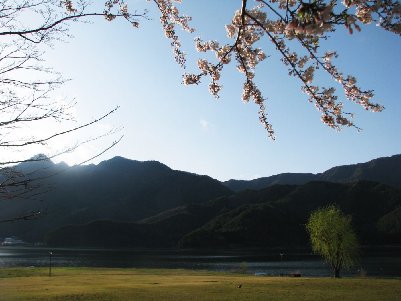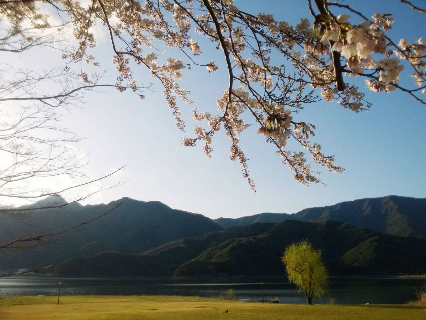 ในรีวิวบอกว่าที่นี่เป็นร้านอาคาร(แต่ติดป้ายClose!) มื้อเย็นเลยสั่งอาหารกับโรงแรม เพราะไปถึงก็เย็นแล้ว และพนักงานต้อนรับบอกเซเว่นต้องเดินไป15นาที(ถ้าคนญี่ปุ่นบอกก็บวกเวลาไปครึ่งนึงเลยค่ะ) และต้องเดินผ่านสุสาน(อันนี้ลองดูทางเองในmap) ระหว่างรอให้มืด เลยตัดสินใจไปเดินเล่นตรงสนามหญ้าหน้าทะเลสาปแทน อากาศดีสุดๆไปเลย มีคนเอาน้องหมามาวิ่งเล่น แล้วก็มีคนมาปิกนิกกันด้วย แถวนี้ดูนักท่องเที่ยวไม่เยอะ คนที่เดินผ่านไปมาน่าจะคนในท้องถิ่นซะมากกว่า