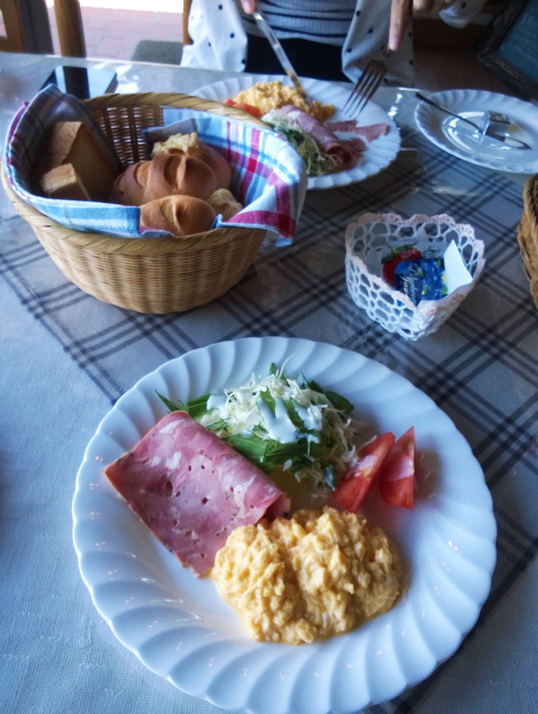 มื้อเช้าก็เป็นชุดอาหารเช้าปกติ ขนมปังดีเวอร์ ไม่รู้คุณรุจตีแป้ง อบเองเลยรึป่าว เพราะหน้าโรงแรมมีเตาผิงอันใหญ่ ไว้สำหรับอบขนมปัง เช่นเดิมคือคุณรุจได้เปลี่ยนเป็นชุดเชฟเพื่อทำอาหารเช้าให้เราทาน โอยยย ชอบมาก