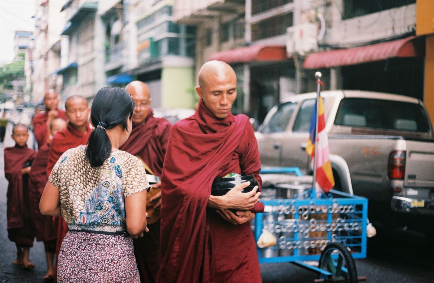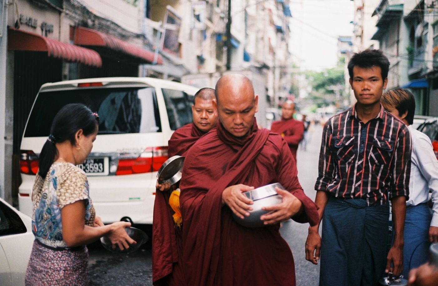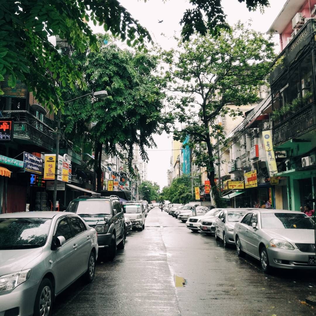 เช้าวันที่สองในย่างกุ้ง เมื่อคืนเราตกลงกับเพื่อนว่าจะเป็นคนปลุกมันแต่เช้าเพื่อออกไปถ่ายรูปวิถีชีวิตคนเมืองกันรอบๆที่พัก แต่นอกจากเราจะไม่ตื่นแล้วก็ยังเป็นเพื่อนอีกที่มาปลุกเรา ตื่นมาก็พบว่าเช้านี้ฝนยังคงตกอยู่ อากาศแบบนี้ไม่มีอะไรเหมาะไปกว่านอนหมกอยู่ในห้อง เรานอนต่ออีกไม่กี่นาทีก็ลุกไปอาบน้ำ แล้วลงมากินมื้อเช้าฟรีรองท้องไว้