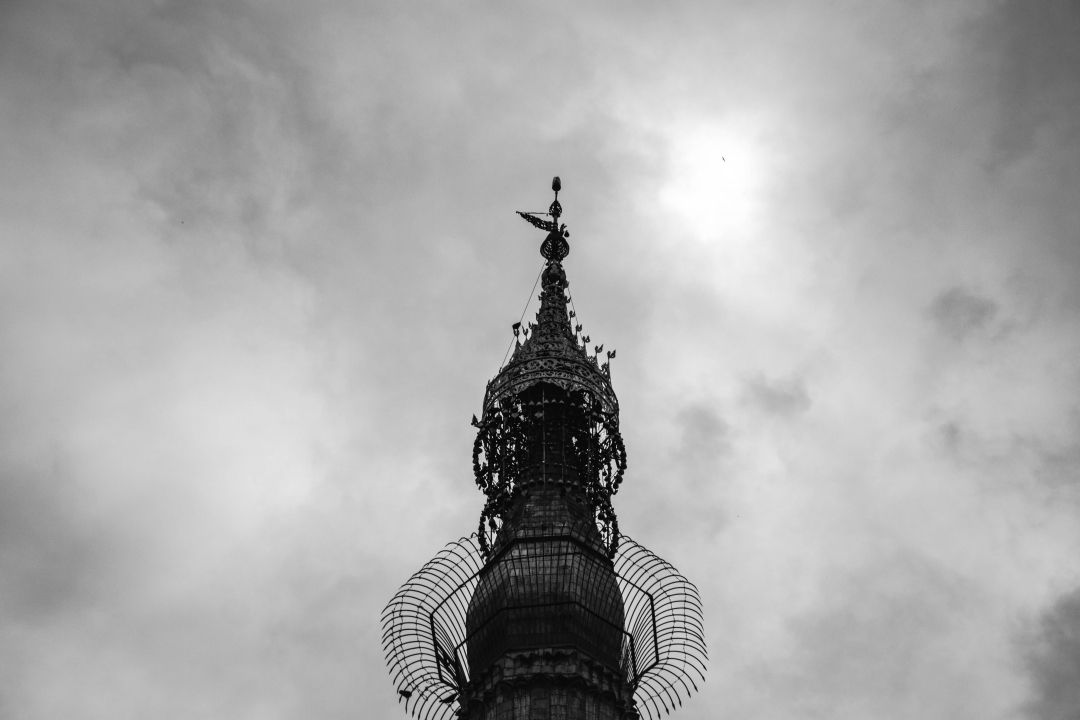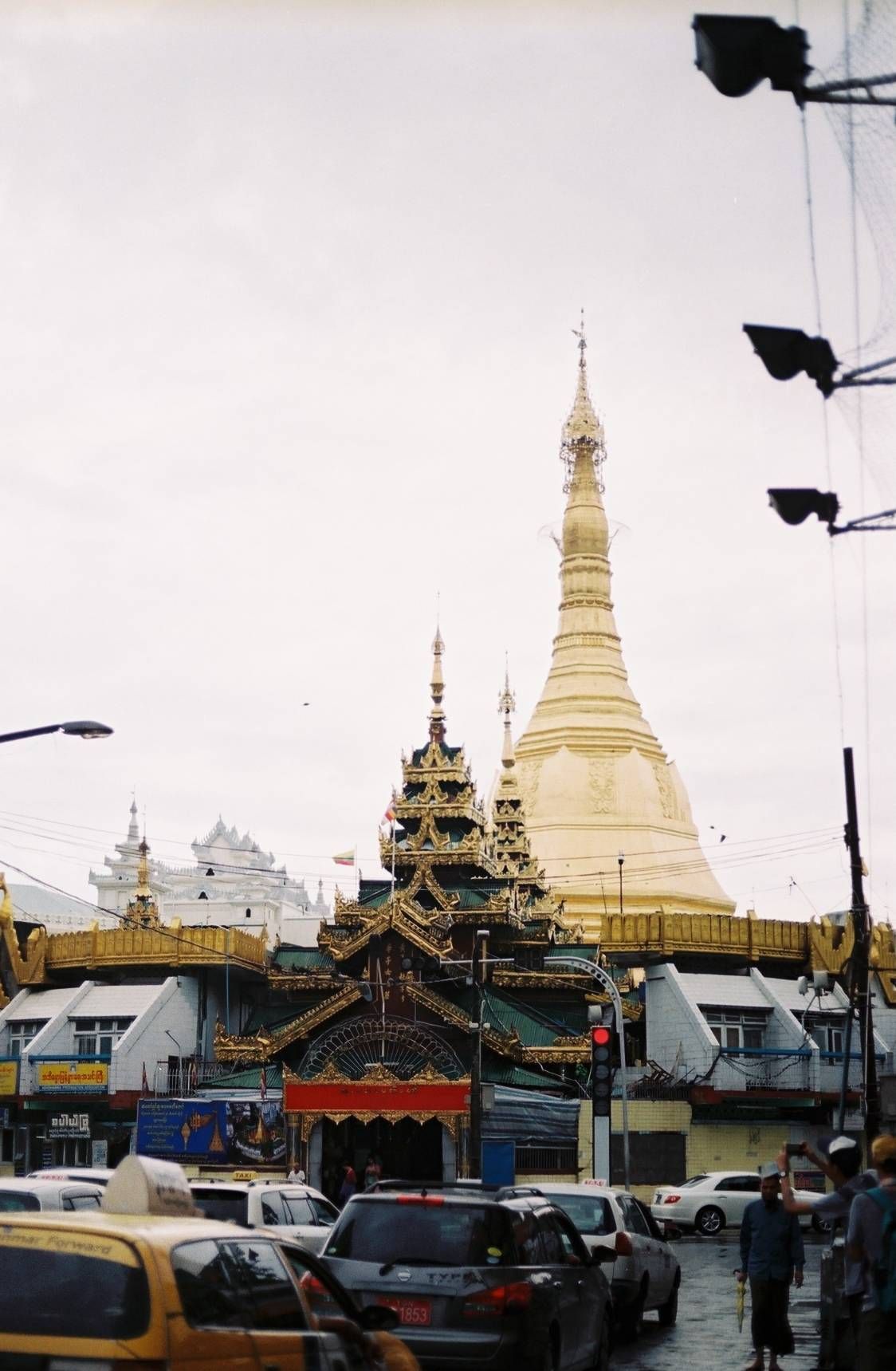 ฟ้ายังคงครึ้ม แต่ฝนหยุดไปได้แปปเดียวเราก็ตัดสินใจออกเดินไปเจดีย์สุเหล่กัน พอเดินไปเรื่อยๆแต่ไกลเกินกว่าจะหันหลังกลับที่พักแล้วฝนก็ตกลงมาอีกครั้ง ระหว่างทางเราต้องเดินผ่านตลาดสด จากที่แออัดกันอยู่แล้ว ฝนที่ตกลงมายังสร้างความวุ่นวายและสกปรกเข้าไปอีก คนเยอะก็ต้องเดินเบียดกันแล้วยังมีร่มที่แต่ละคนกางเพิ่มอุปสรรคการเดินผ่านย่านนี้ไปอีก เราเดินลุยฝนไปเรื่อยจนทนไม่ได้ก็แวะข้างทางหาซื้อร่มแล้วออกเดินกันต่อ พอกางร่มได้ไม่นานฝนก็หยุด ตกๆหยุดๆสลับไปเรื่อย พอผ่านย่านตลาดสดมาก็จะมีอีกย่านที่เราคิดเอาเองจากลักษณะหน้าตาและอาหารที่ขายว่าคงเป็นคนอินเดีย หรือประเทศเพื่อนบ้าน และตั้งแต่เดินมานี่ก็พบว่าคนที่นี่ก็มองหน้าเราด้วย ไม่รู้ว่ามองเพราะอะไร แต่ตั้งแต่เดินมาก็เห็นจะมีแค่พวกเราสี่คนนี่แหละที่เป็นชาวต่างชาติ สรุปว่าใช้เวลาไปกว่า40นาทีเราก็เริ่มมองเห็นยอดเจดีย์สุเหล่แล้ว