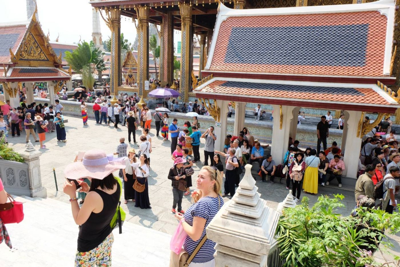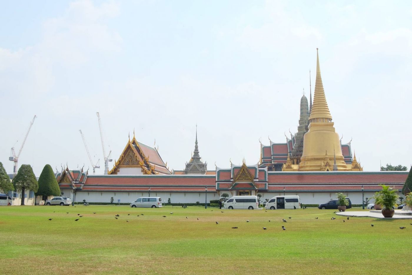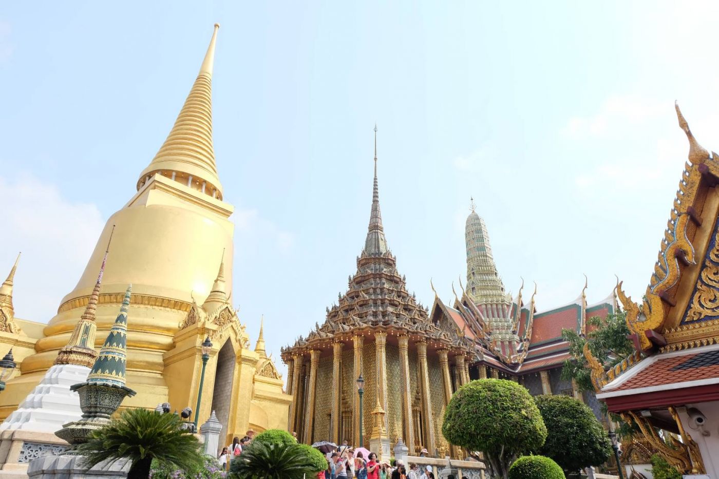 มาเข้าเรื่องละในวัดพระแก้วมีอะไรหรอก็มีเจดีย์ หุ่นยักษ์ ภาพจิตรกรรมฝาผนัง พระแก้วมรกต ก็เหมือนในหนังสือเรียนบอกไว้หละครับไม่ได้มีอะไรมาก แต่ผมว่าหนังสือเขาลืมบอกบางอย่างไปนะคุณคิดว่าอะไรหละ ก็ชาวต่างชาติหละสิเยอะชะมัดเลย(บ่นข้ามตอนเลย5555) แต่ผมว่านะจุดสนใจของวัดพระแก้วหนะคือจิตรกรรมฝาผนังนะคือแบบมันไม่ได้มีเเค่เนื้อเรื่องธรรมดาๆนะแต่มันมีวิถีชีวิตของคนในยุคสมัยนั้นแฝงอยู่ด้วย แล้วยังมีตัวอะไรแปลกๆแฝงอยู่ตามภาพด้วย เช่นตัวอะไรสักอย่างเป็นเหมือนศพมีปีก(ถ้าอยากเห็นก็ลองไปดูจะอยู่ตรงส่วนท้ายๆก่อนออกไปส่วนของพระที่นั่งต่างๆ รูปจะอยู่บนๆหน่อย) บางคนอาจจะถามหาเเล้วพระแก้วมรกตหละมีคนบอกว่าถ้าไม่เก็นแปลว่าไปไม่ถึง กูยอมใครว่าไปไม่ถึงก็ไม่เป็นไรเเต่กูถึงเเล้ว คือคนมันเยอะมากจริงๆครับแบบเดินไม่ได้ ตอนเเรกเราว่าจะเข้าส่วนของพระที่นั่งเลยเเต่จากคำกล่าวของนโปเลียนผู้ยิ่งใหญ่ว่า