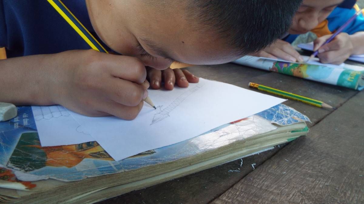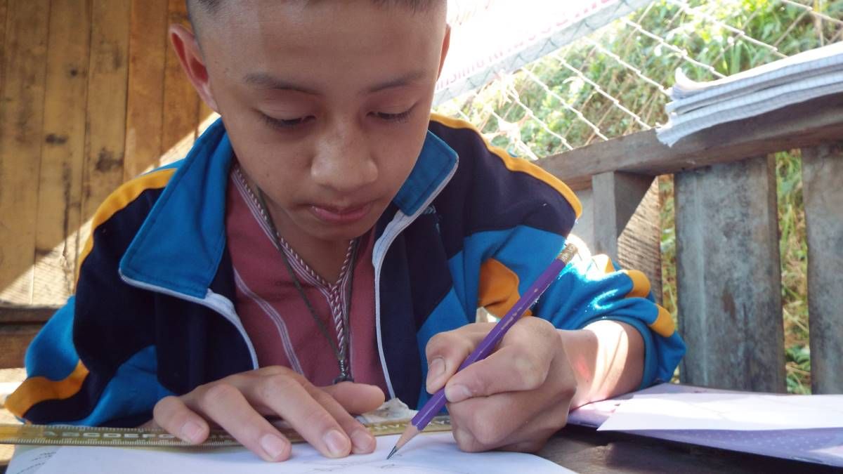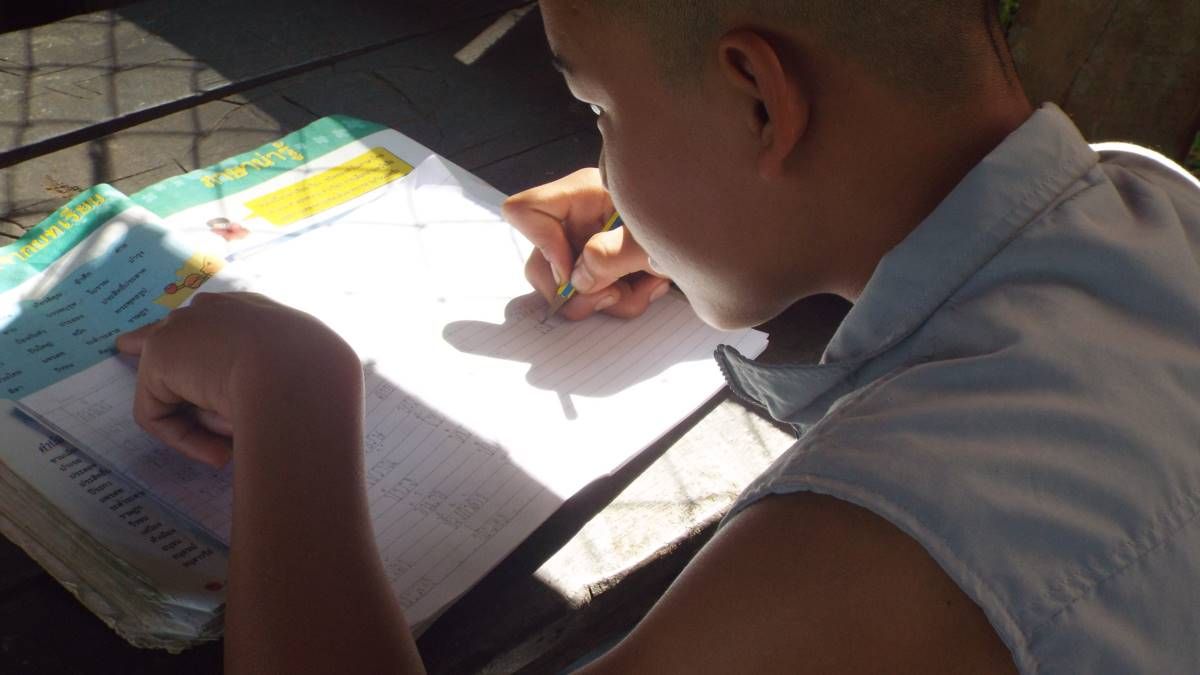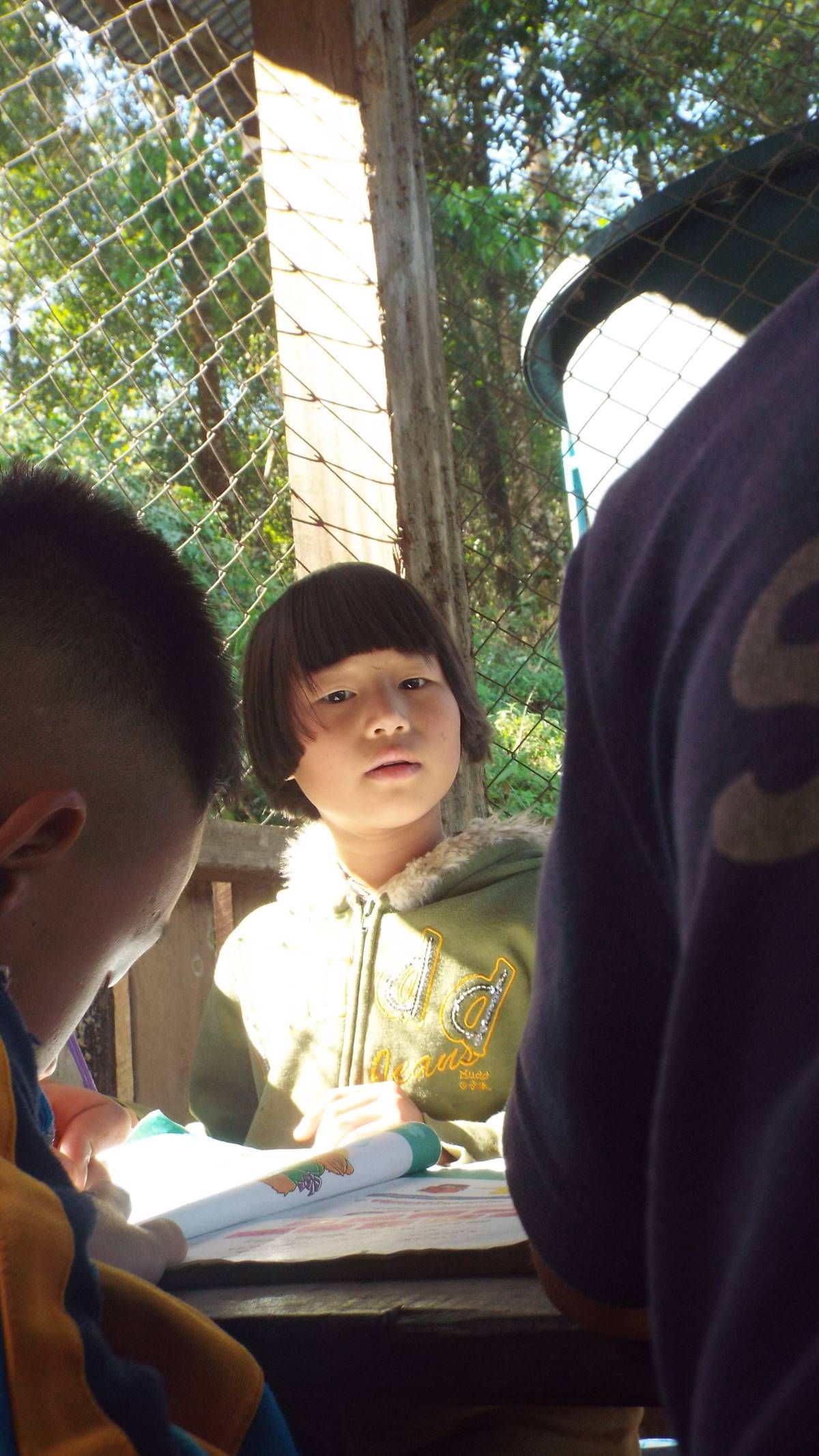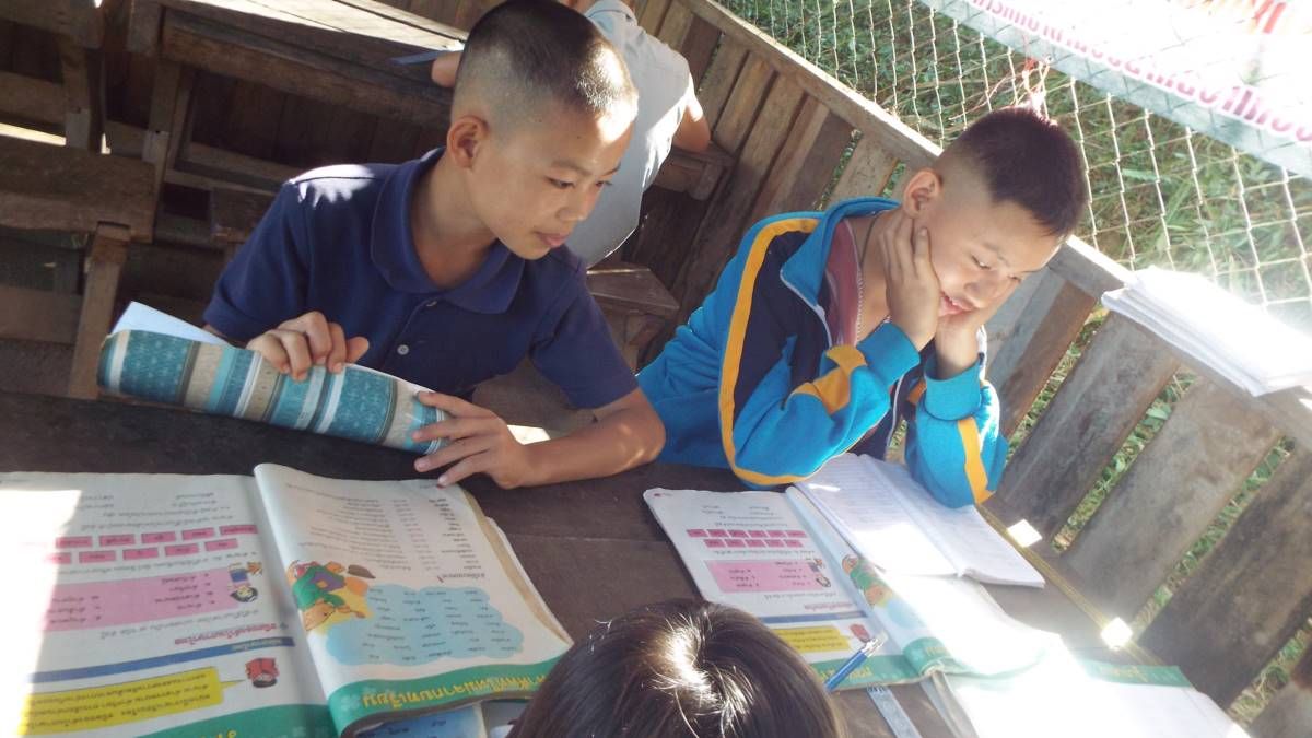 ในวันนี้เด็กๆเรียนอ่อนจะไม่สามารถมาเรียนกับเราได้ และให้ไปเรียนกับครูต้นที่ด้านล่าง ส่วนกลุ่มเรียนได้ก็จะมาเรียนกับพวกผมที่โรงอาหาร มีประมาณ 5 คนมั้ง
