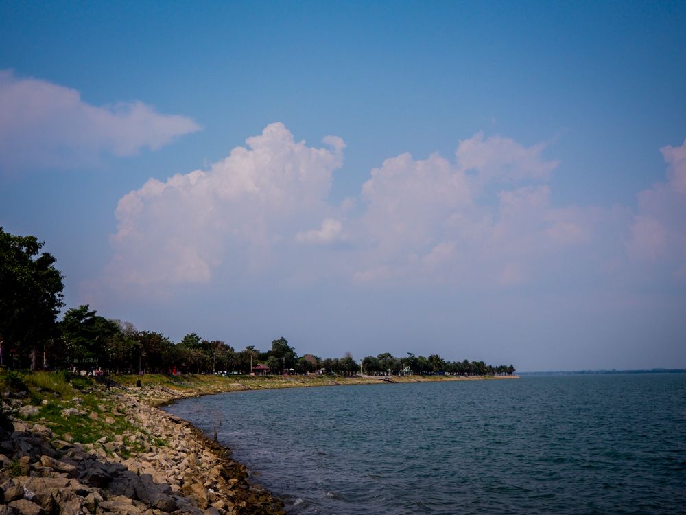 "โหหห นึกว่ามาทะเล โคตรใหญ่อ่ะ แต่ว่าไปคล้ายอ่างแก้วยักษ์เลยเนอะ(อ่างเก็บน้ำในมหาวิทยาลัยเชียงใหม่ บรรยากาสดีมาก เชิญชวนไปเที่ยวกัน)" อากาศวันนั้นถึงแม้จะร้อนไปหน่อย แต่ก็ขอบคุณธรรมชาติที่อย่างน้อยก็มีสายลมอ่อนๆพัดมากระทบหน้าพวกเราเป็นพักๆ จะได้ไม่ร้อนกันเกินไป