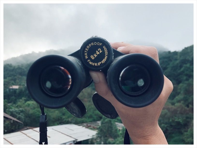 คุณลุงก็ใจดี เดินไปหยิบกล้องส่องทางไกล
