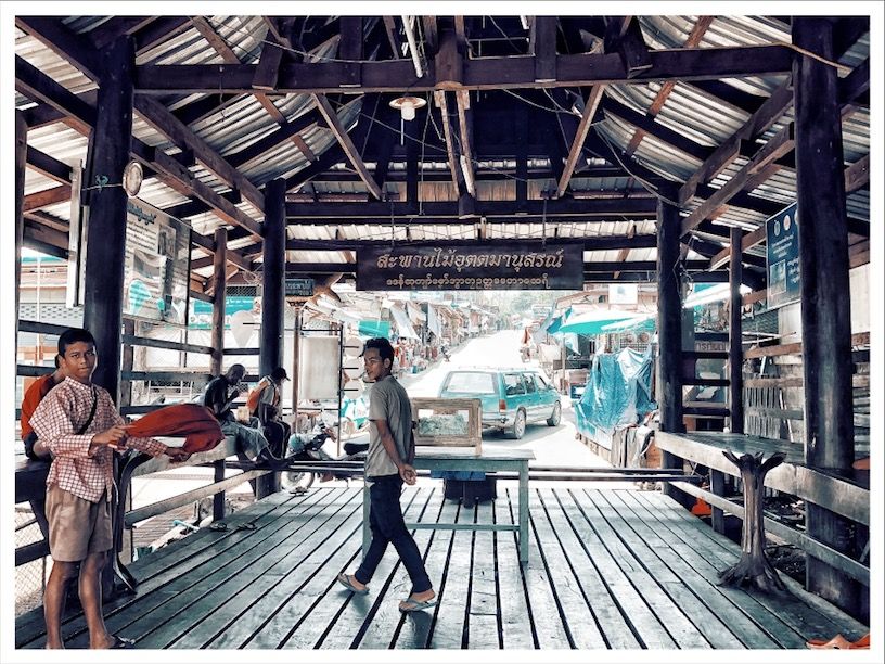 เราให้คุณลุงส่งที่ฝั่งพม่า แล้วจะเดินเล่นบนสะพานตอนเที่ยงนี่แหละ